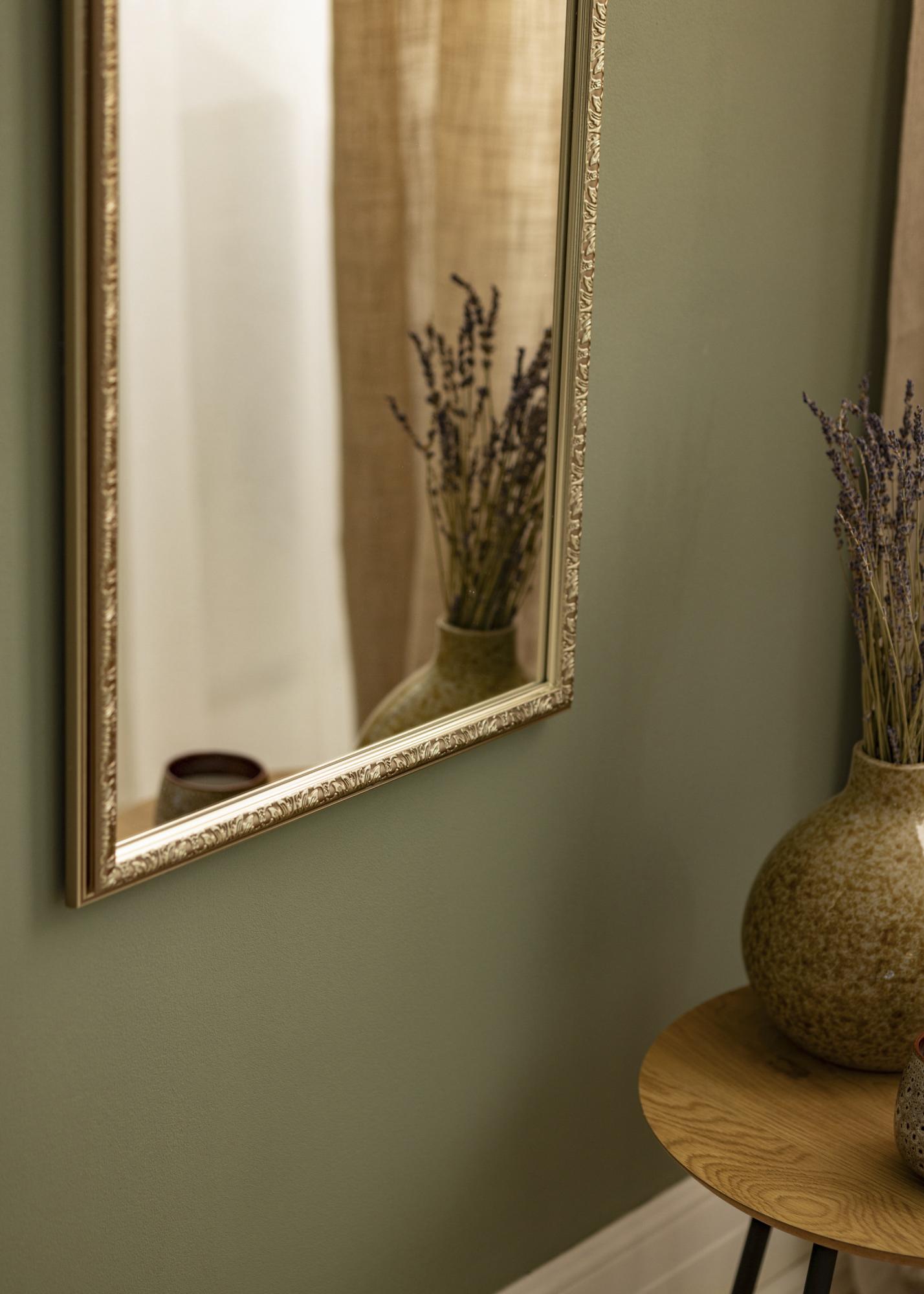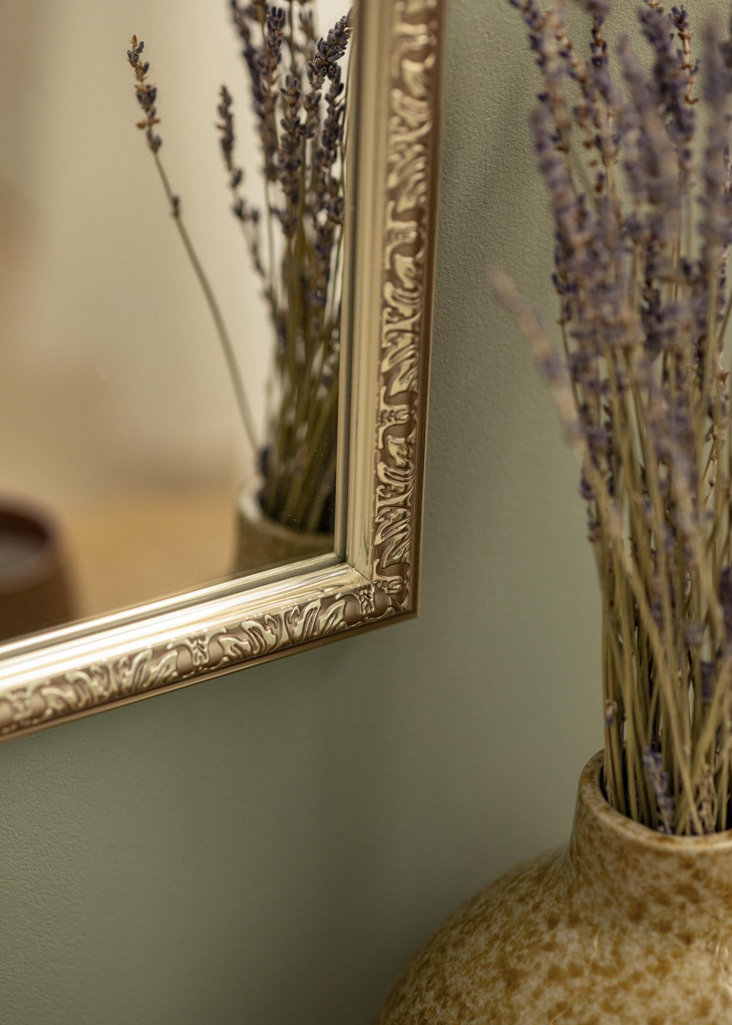 Pozwól, aby to ponadczasowe lustro ozdobiło ściany Twojego domu. Srebrna rama ma unikalny profil i jest ozdobiona pięknymi ornamentami. Klasyczny wygląd sprawia, że będzie doskonałym dodatkiem w niemal każdym pomieszczeniu i pasuje zarówno samodzielnie, jak i jako interesujący element na ścianie z obrazami!