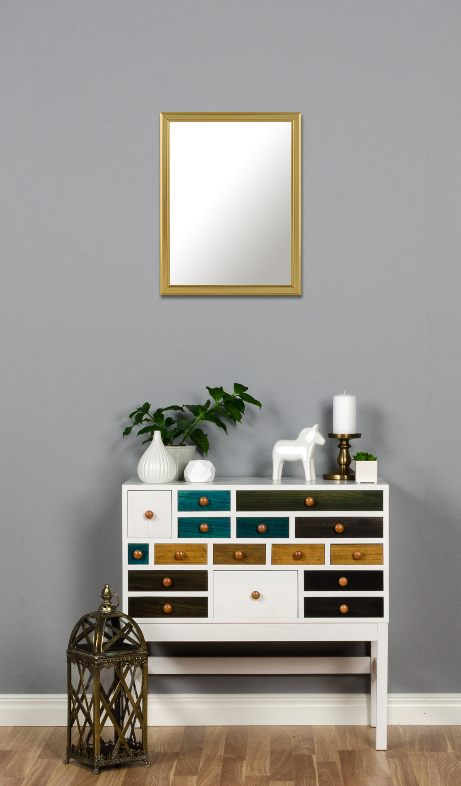Planujesz dopasować złote ramki i inne elementy dekoracyjne z pozłacanym lustrem? Mamy do wyboru wiele pięknych wzorów! To lustro ma przyjemny profil z dyskretnymi paskami, które zmieniają się w różnych odcieniach złota.