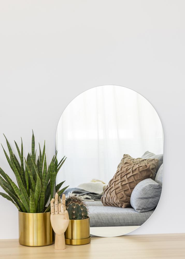 Lustro bez ramy w owalnym kształcie. Idealny dodatek do salonu lub jako mniejsze lustro do przedpokoju.