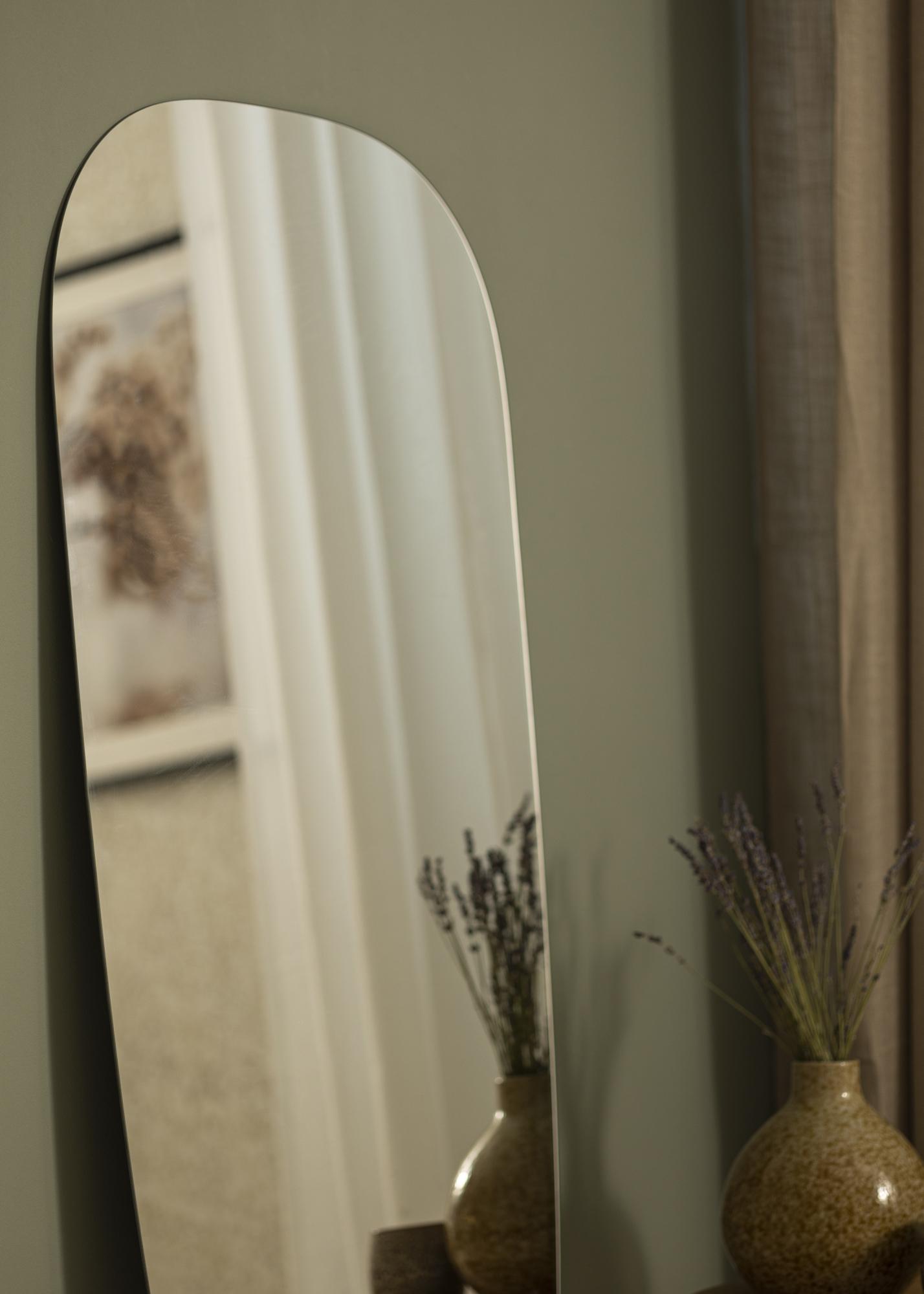 To lustro jest zaprojektowane do zawieszenia w pozycji pionowej, co czyni je idealnym na węższe ściany lub przestrzenie, gdzie przestrzeń pozioma jest ograniczona. Płynny i organiczny kształt tworzy miękką i zapraszającą atmosferę w pokoju, jednocześnie działając jako praktyczny i dekoracyjny element. Projekt lustra jest starannie przemyślany, aby wpasować się w różne style wnętrz, od minimalistycznych po bardziej tradycyjne.