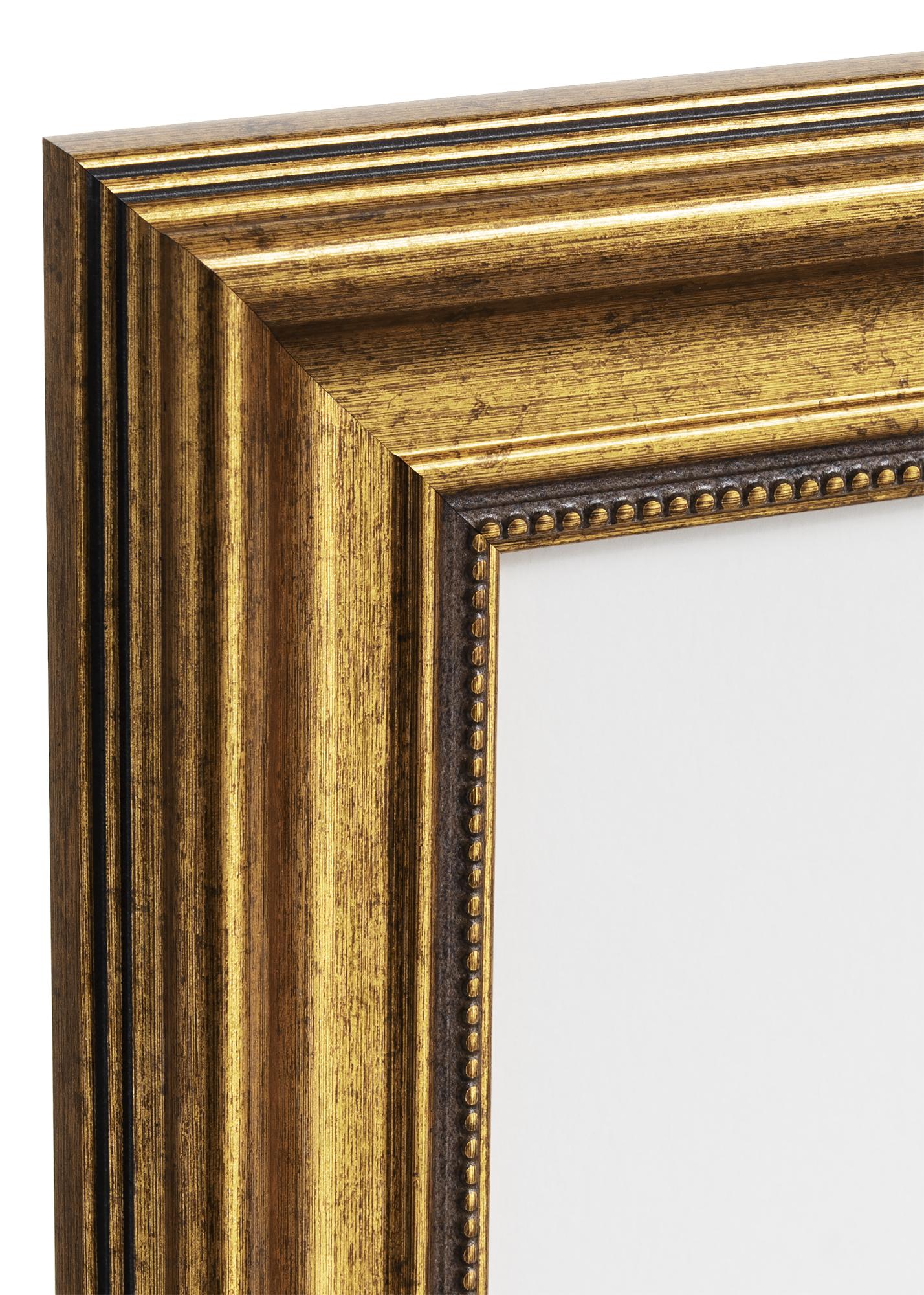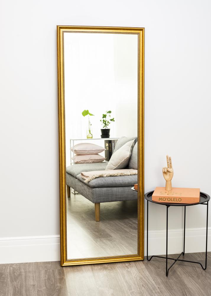To prostokątne lustro jest zarówno funkcjonalne, jak i bardzo dekoracyjne. Klasyczny styl i złota rama nadają lustrze ciepły i zachęcający wygląd.