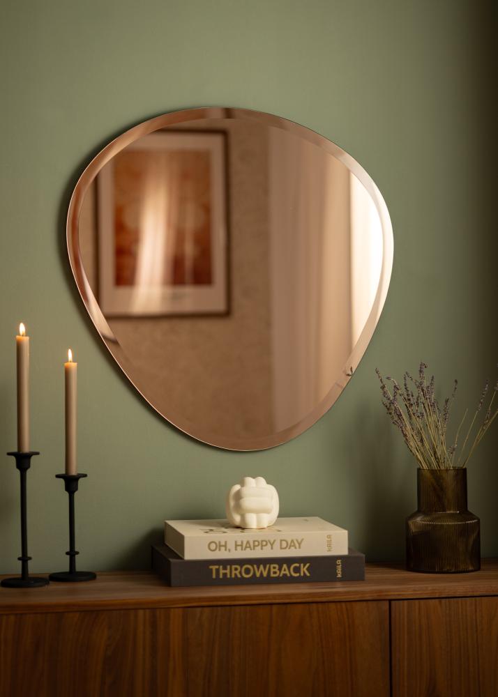 To piękne lustro duńskiej firmy Incado ma wymiary 68x70 cm i posiada stylowe, przyciemniane szkło w odcieniu różowego złota. Jego wspaniała forma sprawia, że przyciąga uwagę i pasuje do każdego nowoczesnego domu oraz każdego rodzaju pomieszczenia.