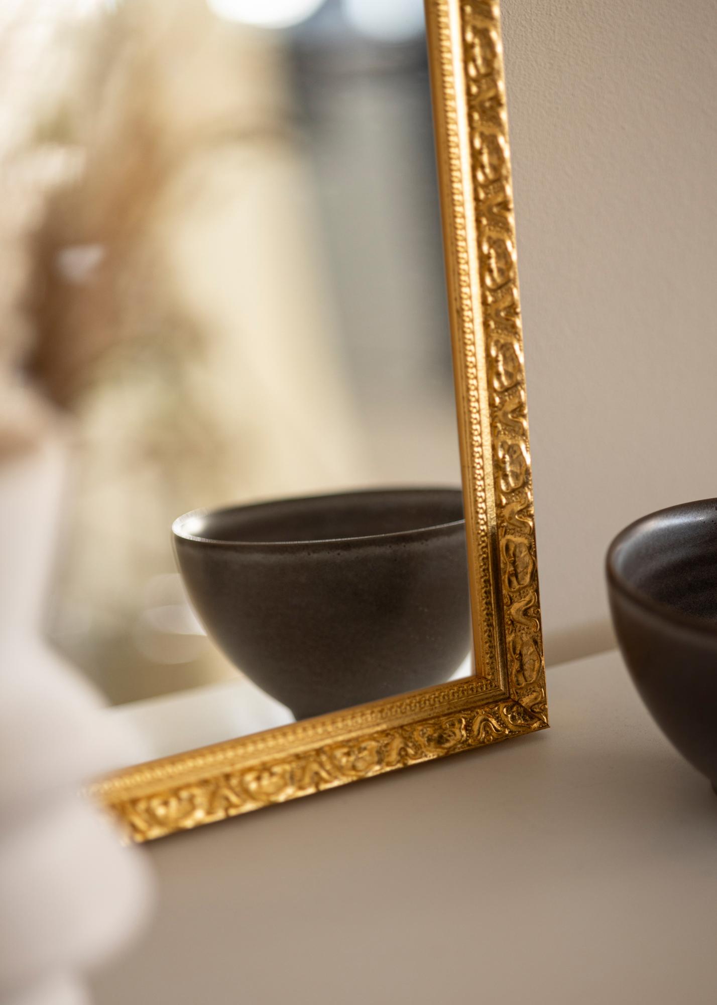 Stylowe lustro retro w złotym kolorze o wysokiej jakości z ekskluzywnym designem, wyprodukowane we Włoszech.