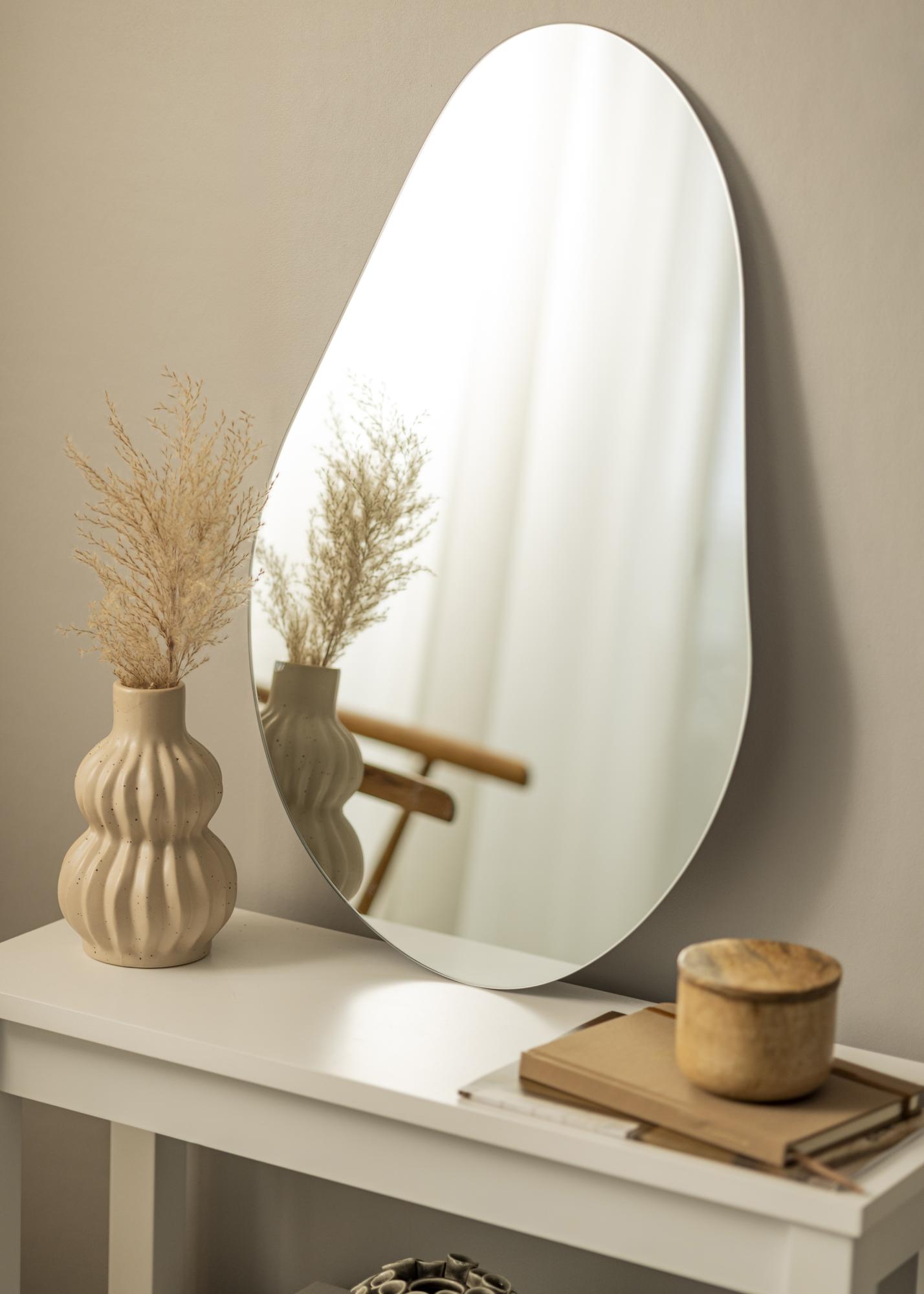 Smooth Cloud to lustro ścienne o owalnym kształcie z lekko wklęsłymi bokami. Tworzy to miękką formę, która jest bardzo elegancka. Stylowe wrażenie wzmacnia cienkie szkło lustra o grubości 4 mm oraz bezramowa konstrukcja. To lustro waży 2 kg i ma wymiary 40x65 cm.