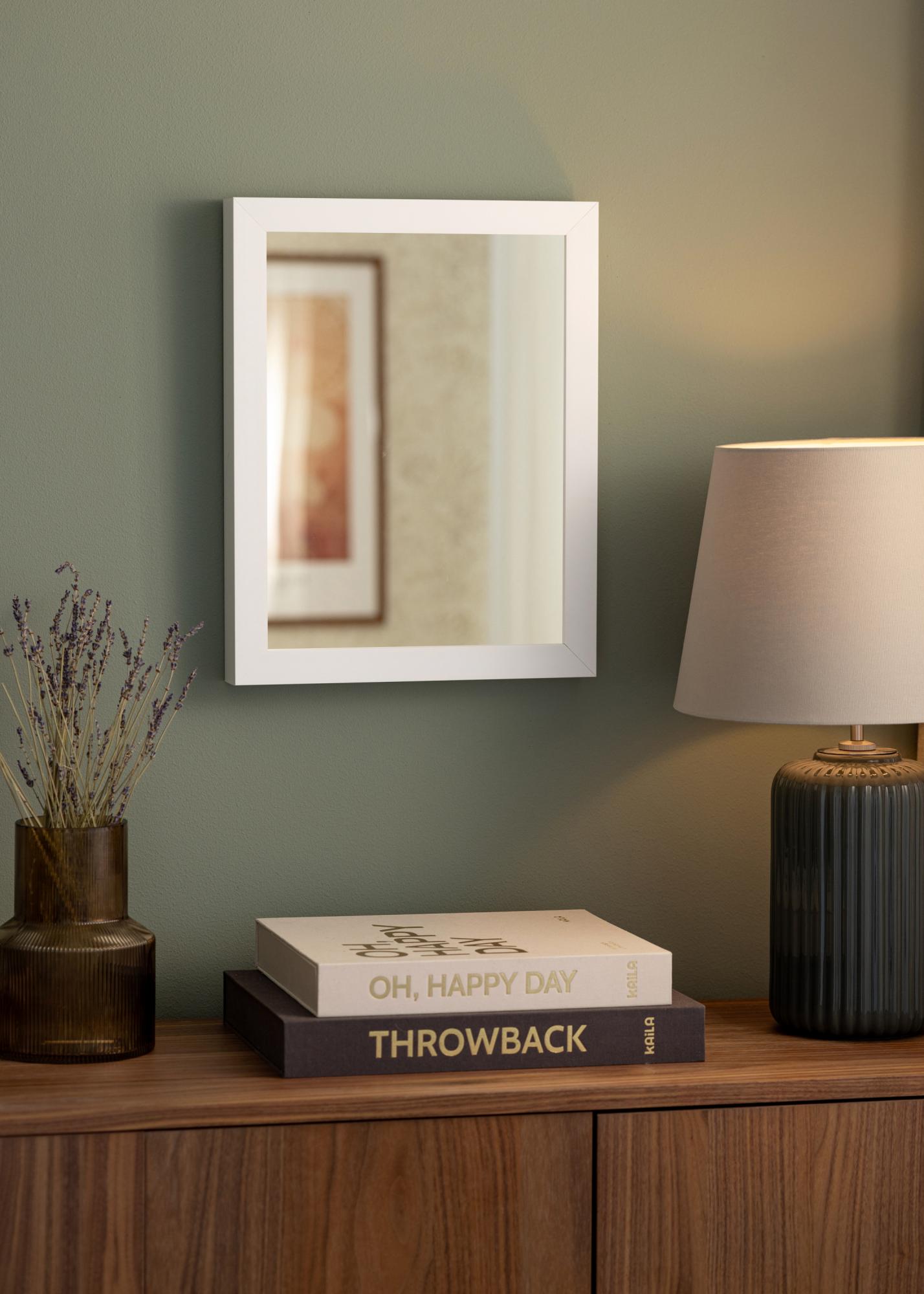 To lustro ma elegancki biały kolor, który wpasowuje się w większość stylów wnętrzarskich. Rama o szerokości 30 mm nadaje lustrze elegancki i dyskretny wygląd, podczas gdy głębokość 50 mm tworzy solidne i mocne wrażenie. Wykonane z sosny, lustro oferuje zarówno trwałość, jak i naturalne wrażenie, które uzupełnia jego nowoczesny design.