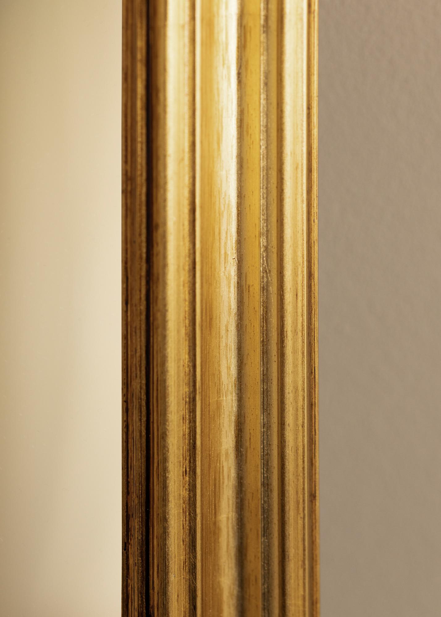 To lustro ma piękny złoty kolor z miękkimi zaokrąglonymi profilami, które nadają klasycznego i wyrafinowanego wyglądu. Ciepły złoty kolor ma subtelne przejścia i lekko postarzaną powierzchnię, co przyczynia się do ponadczasowego wyrazu, który pasuje zarówno do nowoczesnych, jak i tradycyjnych wnętrz. Lustro może łatwo stać się centralnym punktem Twojego pokoju, niezależnie od tego, czy umieścisz je w korytarzu, salonie czy sypialni.