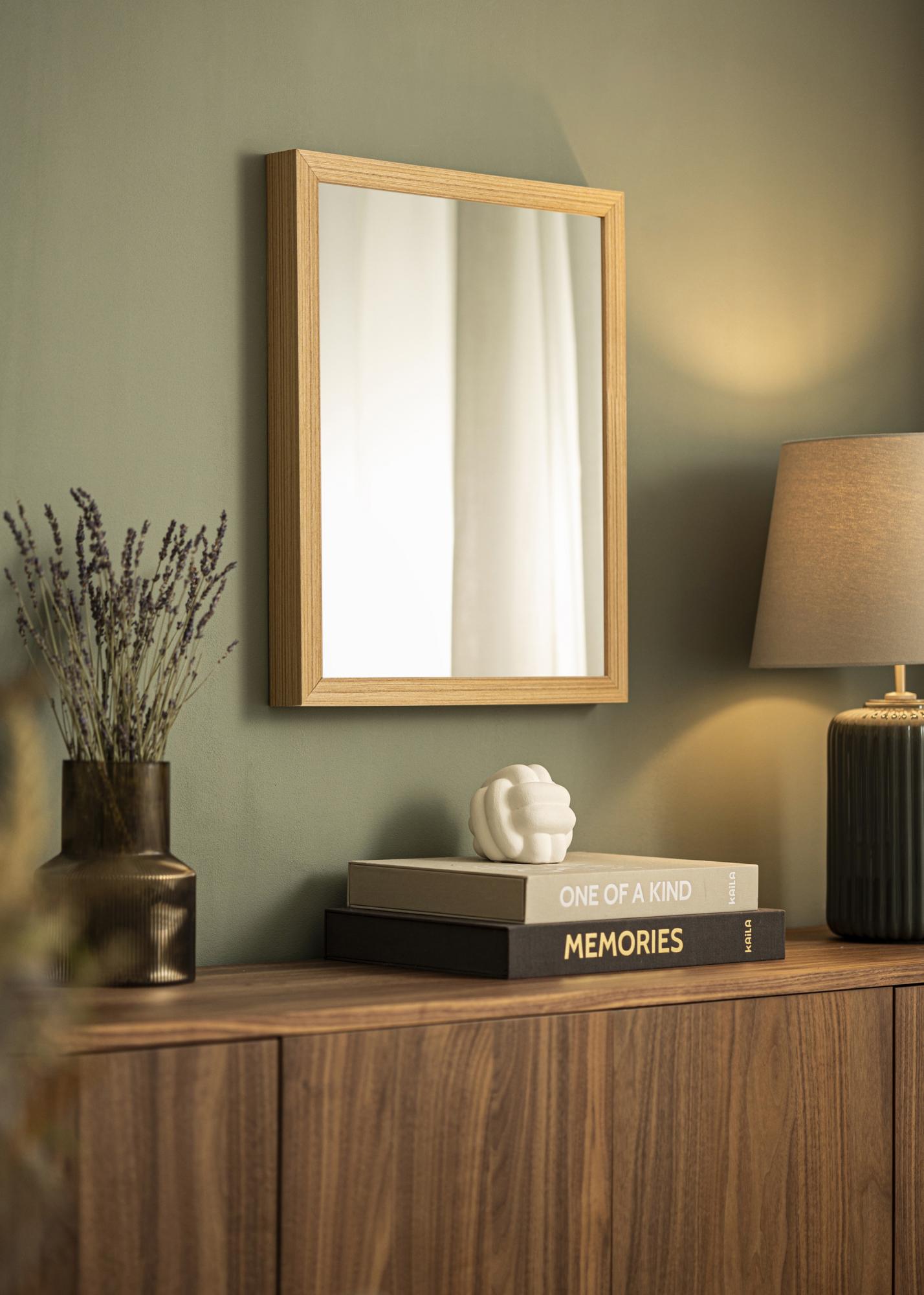 To lustro ma eleganckie wykończenie imitujące drewno dębowe, które nadaje naturalny i elegancki wygląd. Rama o szerokości 48 mm efektownie obramowuje lustro i przyczynia się do jego solidnego wyglądu. Z głębokością 42 mm, rama również daje poczucie stabilności i jakości, co sprawia, że lustro stanowi trwały element Twojego wnętrza.
