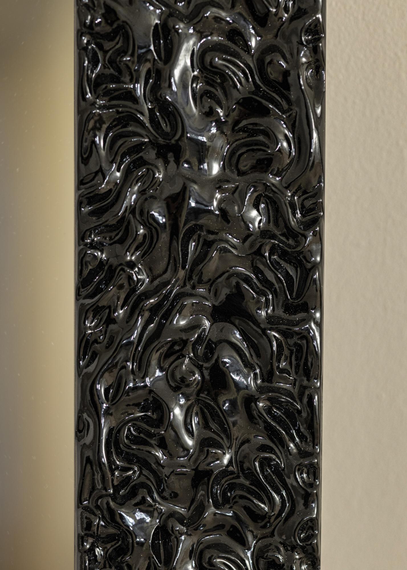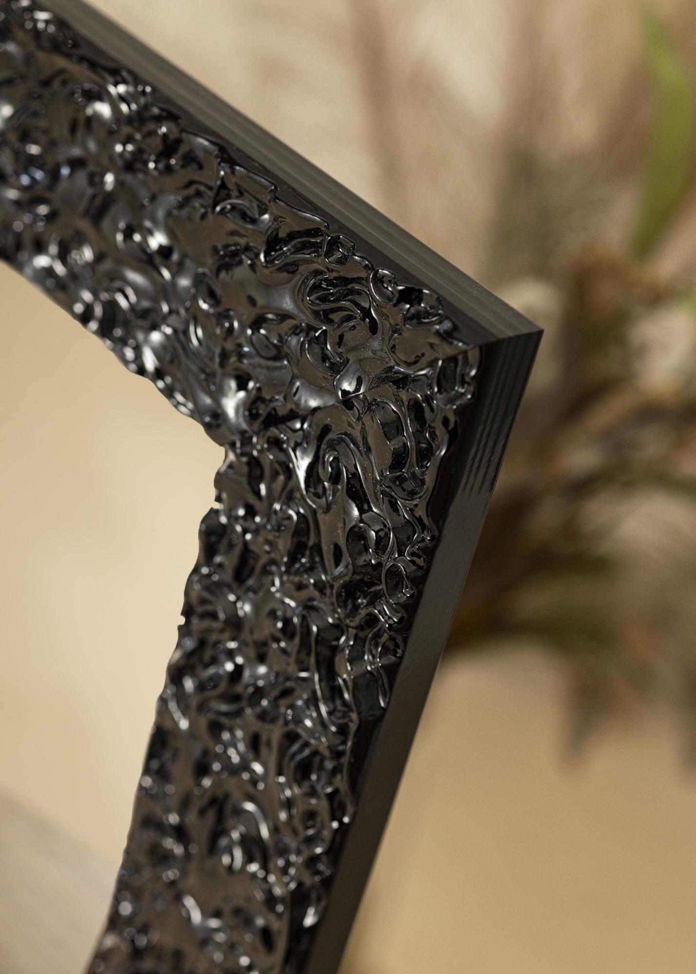 Lustro Westminster Czarny to lustro na zamówienie, co oznacza, że możesz je otrzymać w dokładnie takich wymiarach, które najlepiej pasują do twojego domu. Dzięki swojej głębokiej czarnej barwie i wysokiemu połyskowi, to lustro stanie się eleganckim dodatkiem do każdego pomieszczenia. Ramka o szerokości 81 mm nadaje lustrze solidne obramowanie, podczas gdy organiczny wzór na powierzchni tworzy żywy i dramatyczny efekt.