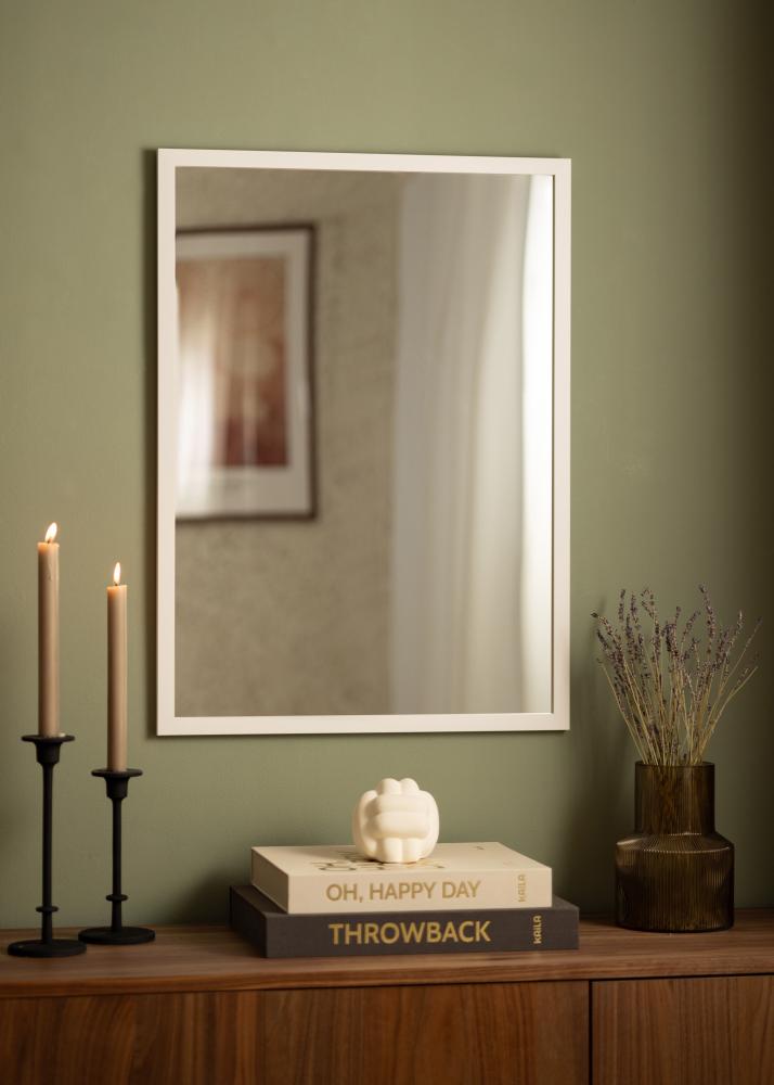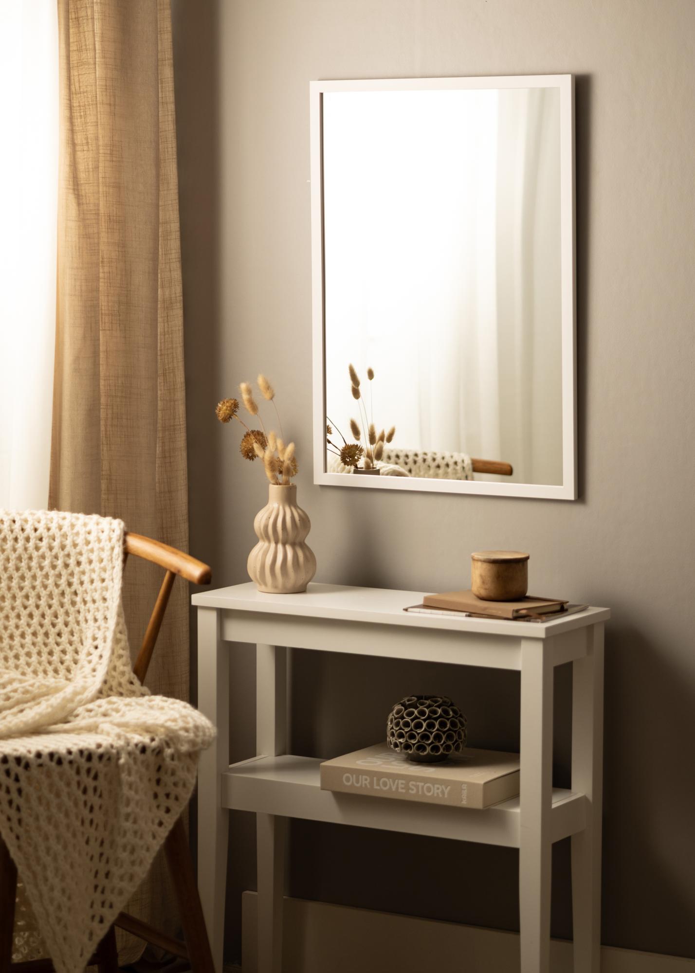 To lustro ma klasyczny wygląd z ramą o szerokości 22 mm i głębokości 15 mm, wykonaną z białego malowanego drewna. Tradycyjny wyraz jest wzmocniony przez bezbarwną taflę lustra.