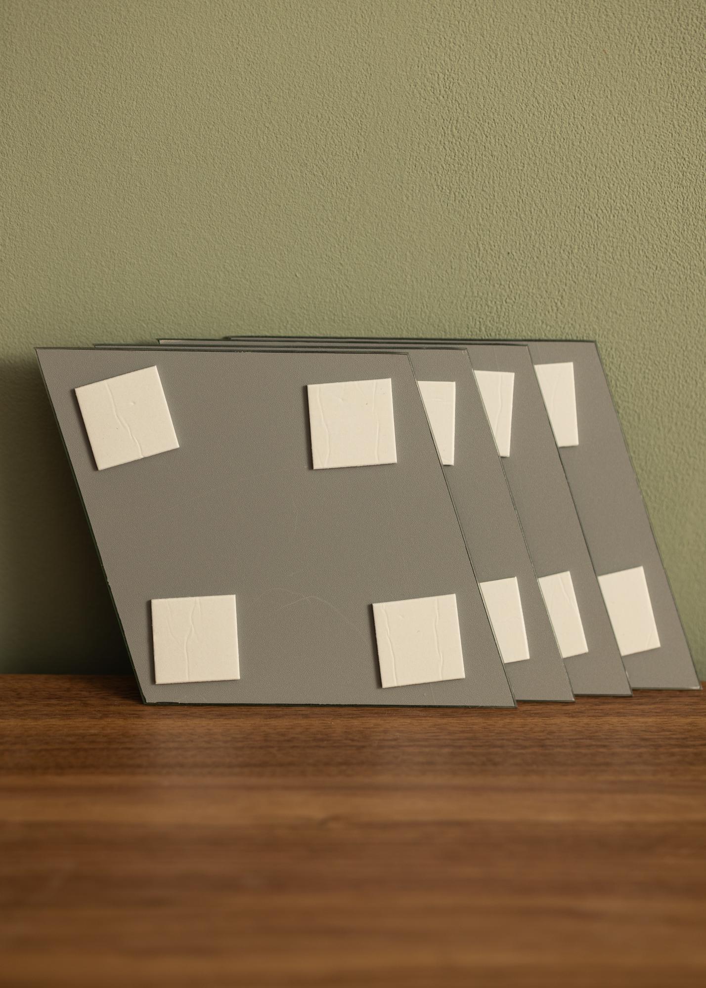 Te supermodne lustra są sprzedawane w zestawie 4 sztuk i dostarczane razem z taśmą dwustronną, dzięki której łatwo zamontujesz je na ścianie.