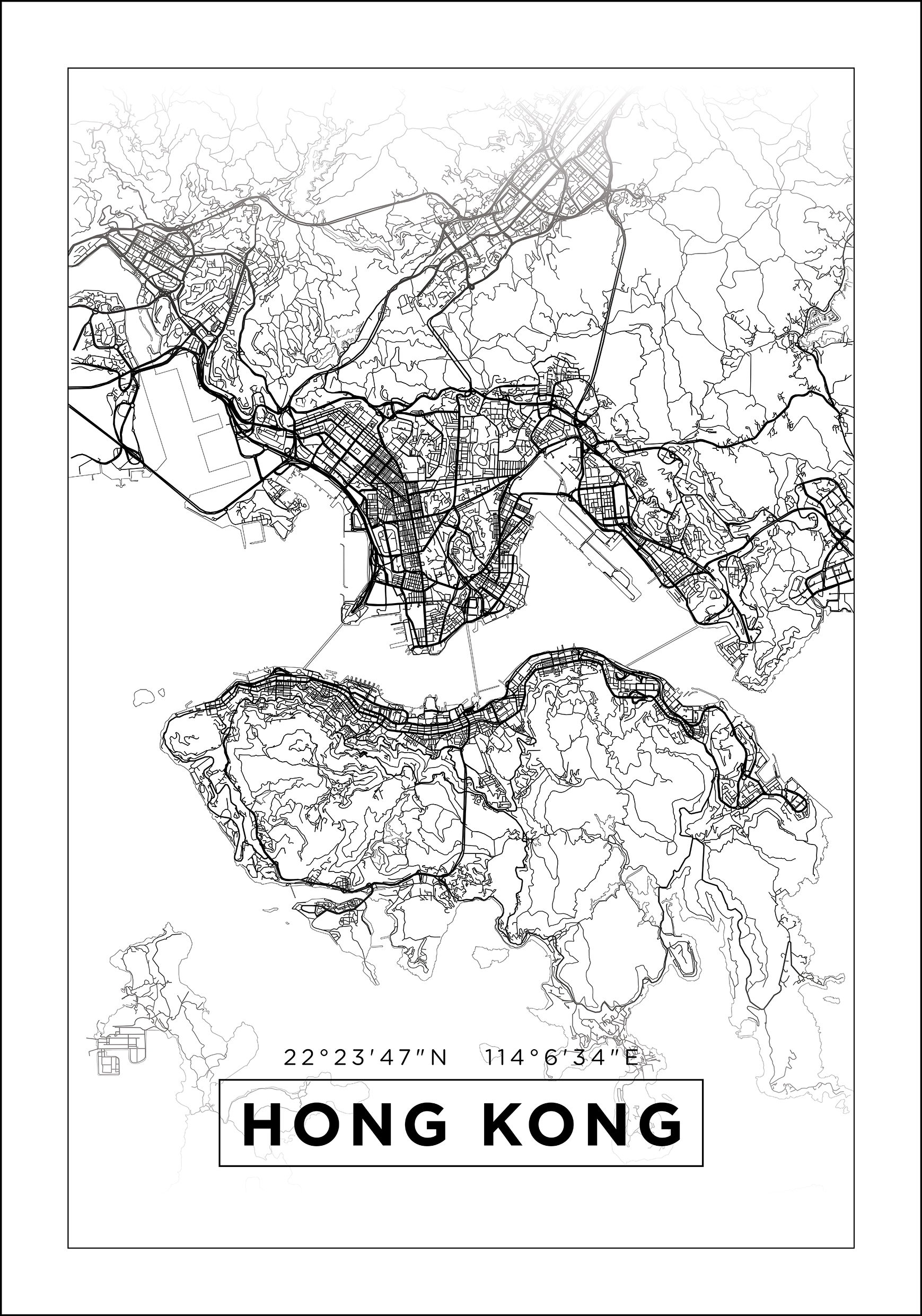 Mapa - Hong Kong - Biały Plakat