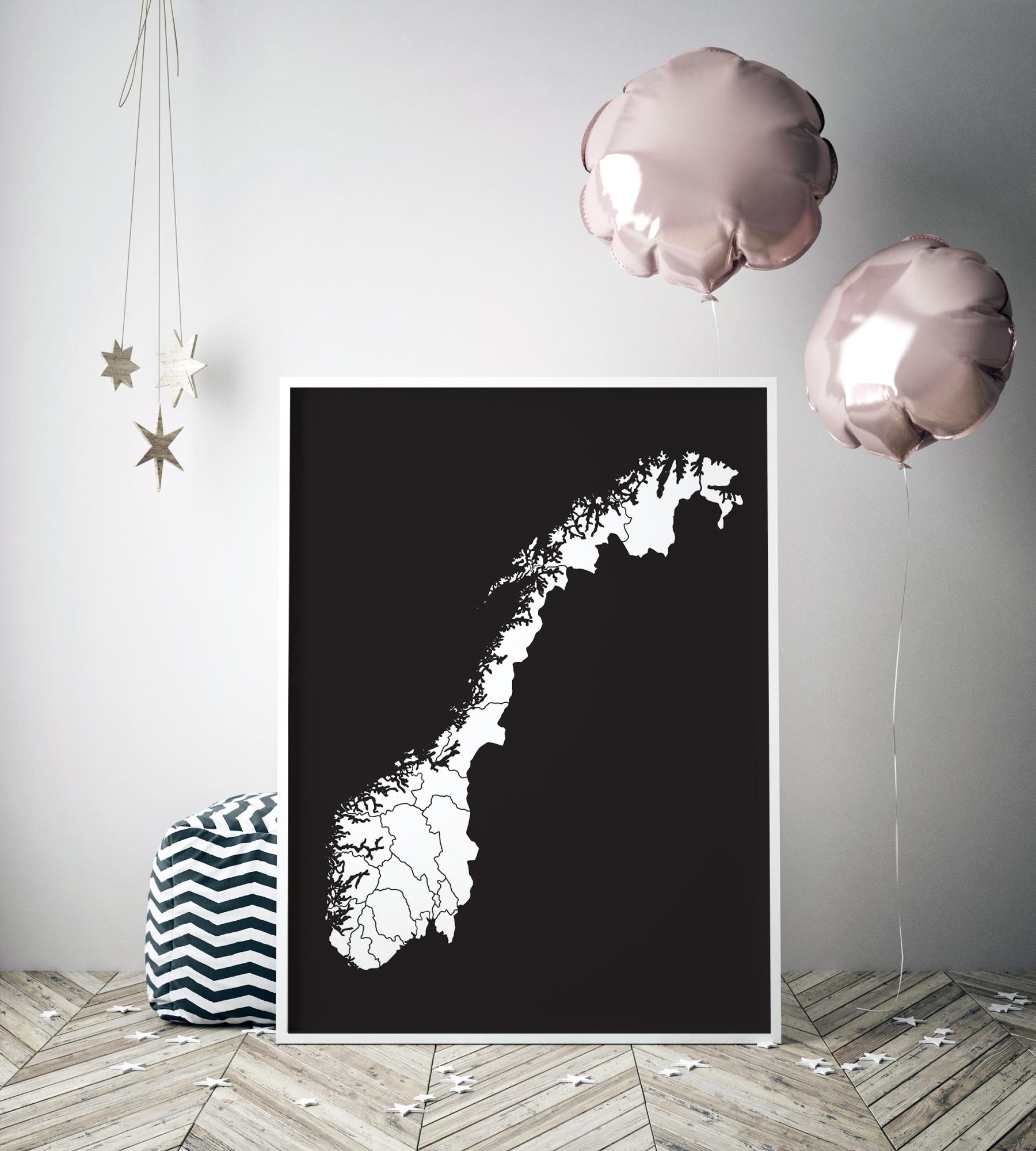 Pozwól, aby twoje ciepłe uczucia do Norwegii odzwierciedlały się w twoim wnętrzu! Tutaj mamy stylową, graficzną mapę kraju, która z pewnością upiększy ścianę! Mapa dostępna jest w kolorach niebieskim, szarym, zielonym, różowym, czarnym z białym tłem, białym z czarnym tłem oraz tęczowym. Wybierz spośród 8 różnych rozmiarów i uzupełnij ją odpowiednią ramką!