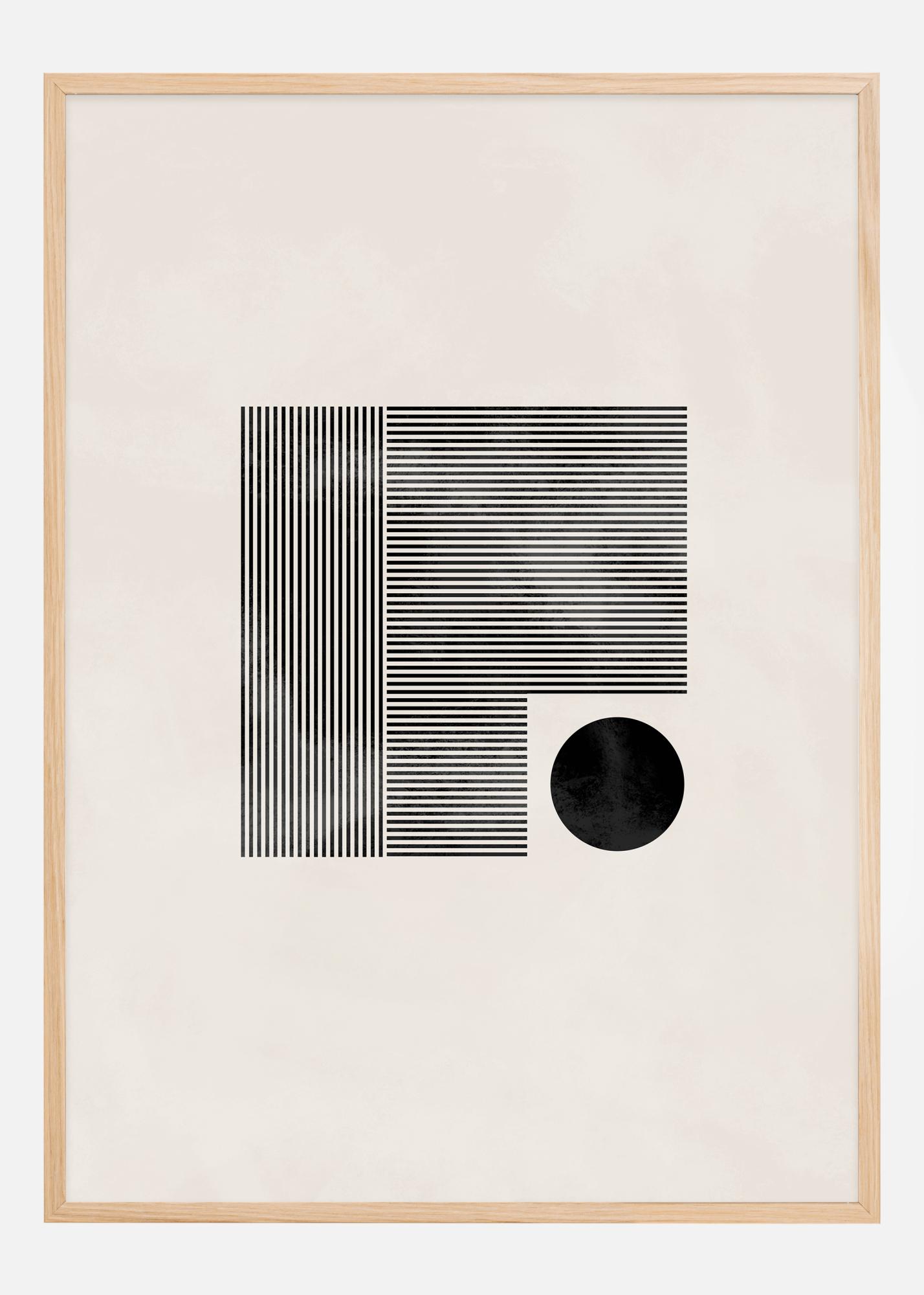 Ten stylowy i minimalistyczny plakat przedstawia geometryczną grę pomiędzy prostokątami a kołem, wszystkimi ukazanymi za pomocą śmiałych czarnych linii i kształtów na miękkim, kremowym tle. Surowa kompozycja linii prostokątów daje poczucie porządku i struktury, podczas gdy samotne czarne koło przełamuje je, wprowadzając nieregularność, która tworzy wizualne zainteresowanie i równowagę. To dzieło sztuki, które można docenić za jego prostotę i zdolność do uzupełniania różnych stylów wnętrz.