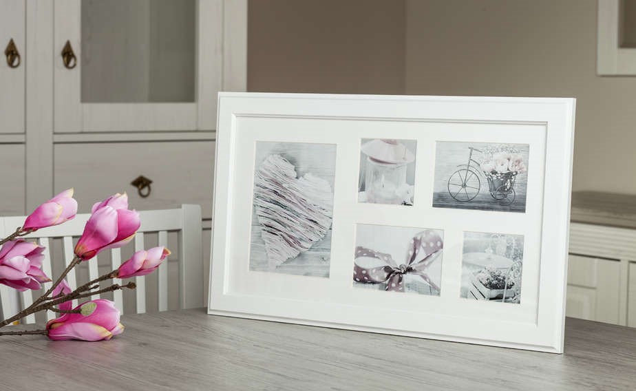 Twórz piękne kolaże ze swoich ulubionych wspomnień, aby uzyskać przytulną i domową atmosferę. Ta elegancka rama na kolaż jest w całości biała, co sprawia, że wygląda pięknie z dowolnymi kolorami. Ramka na zdjęcia ma stylowe detale i białe passepartout, które razem tworzą luksusowe wrażenie. Wypełnij ją zdjęciami, pocztówkami, grafikami lub suszonymi kwiatami!