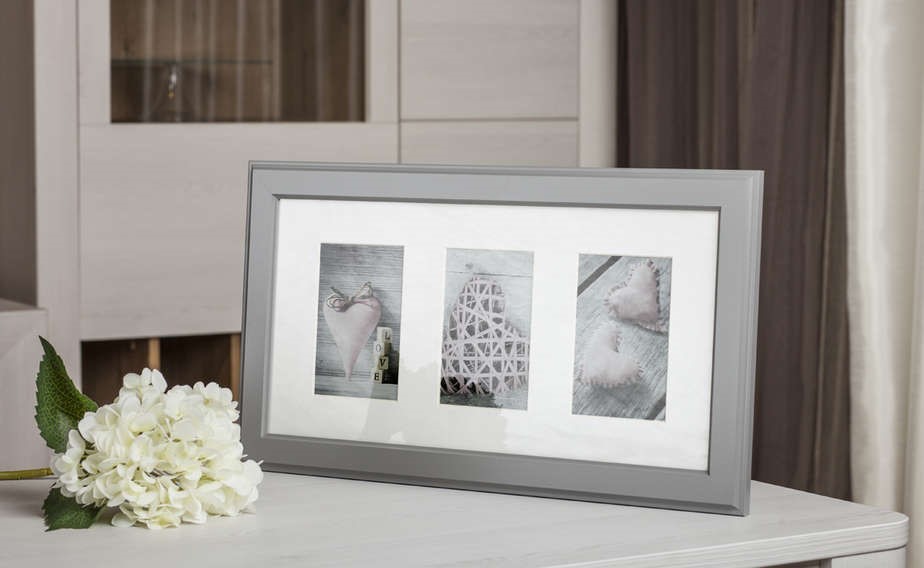 Szary to elegancja! Czyż nie? W każdym razie jest to naprawdę szykowny kolor, który łatwo dopasować, zwłaszcza do pastelowych odcieni. Opraw swoje najpiękniejsze zdjęcia w tę stylową ramkę na kolaż. Rama jest wykonana z drewna i pomalowana na jasnoszary odcień. Listewka ma piękne detale, a biała passepartout dodaje jej luksusowego wyglądu.