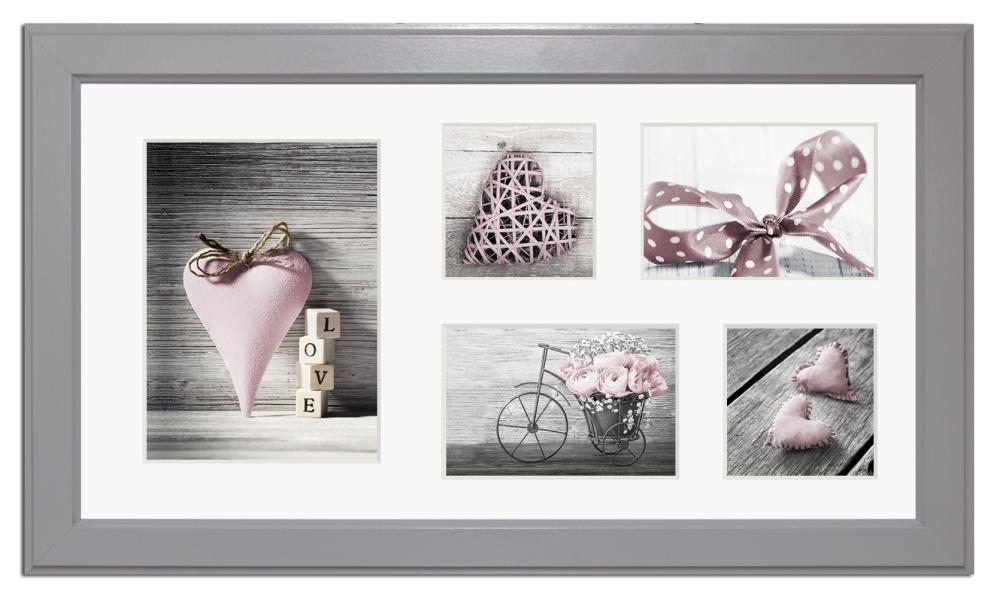 Rama kolażowa Malmö Szara AB - 5 Zdjęć ma miejsce na 5 zdjęć o różnych wymiarach.