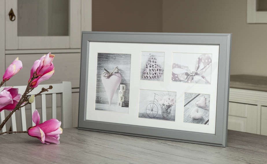 Dom staje się znacznie bardziej osobisty z ulubionymi zdjęciami na ścianach. Tutaj mamy luksusową ramkę na kolaż, która jest w jasnoszarym kolorze z białym passepartout. Ponieważ jest dostosowana do zdjęć o różnych rozmiarach, daje dodatkowo żywy efekt. Chętnie wypełnij ją zdjęciami, które podążają za tym samym motywem, aby uzyskać piękną całość.
