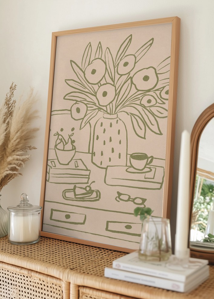 My Desk Still Life Line Art Plakat