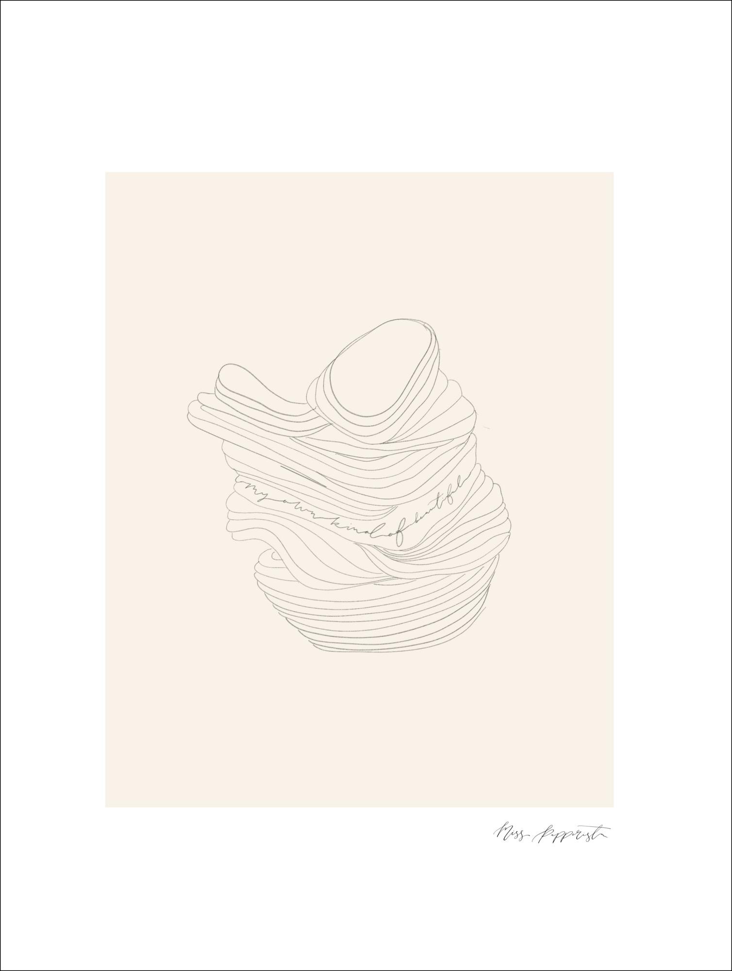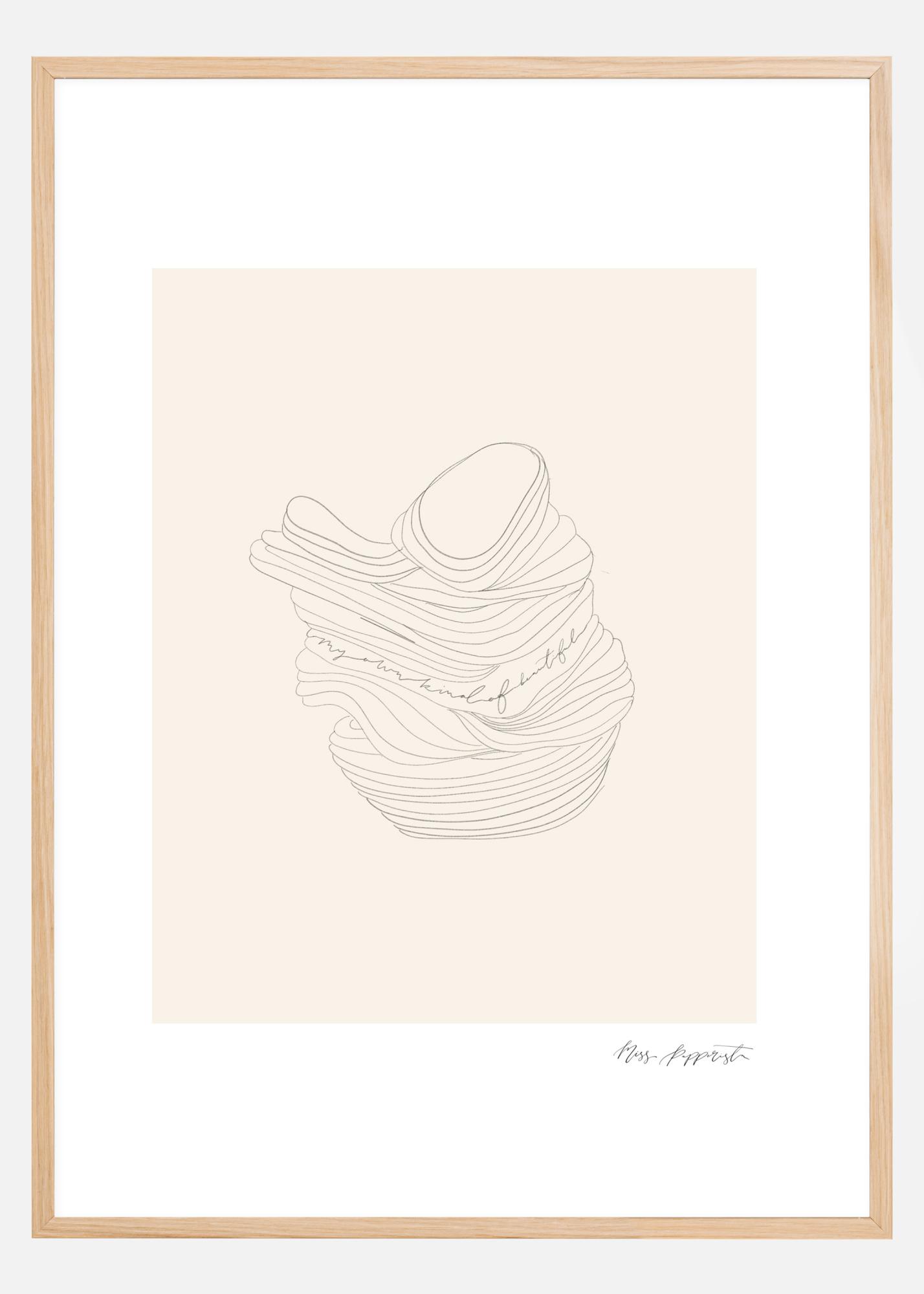 Interesujący rysunek ułożonych przedmiotów. Beżowe tło kieruje wzrok na żebrowaną miskę na obrazku. Idealny druk, aby rozpocząć rozmowę. Powieś ten plakat w swoim salonie i spróbuj zgadnąć, czym są ułożone przedmioty.