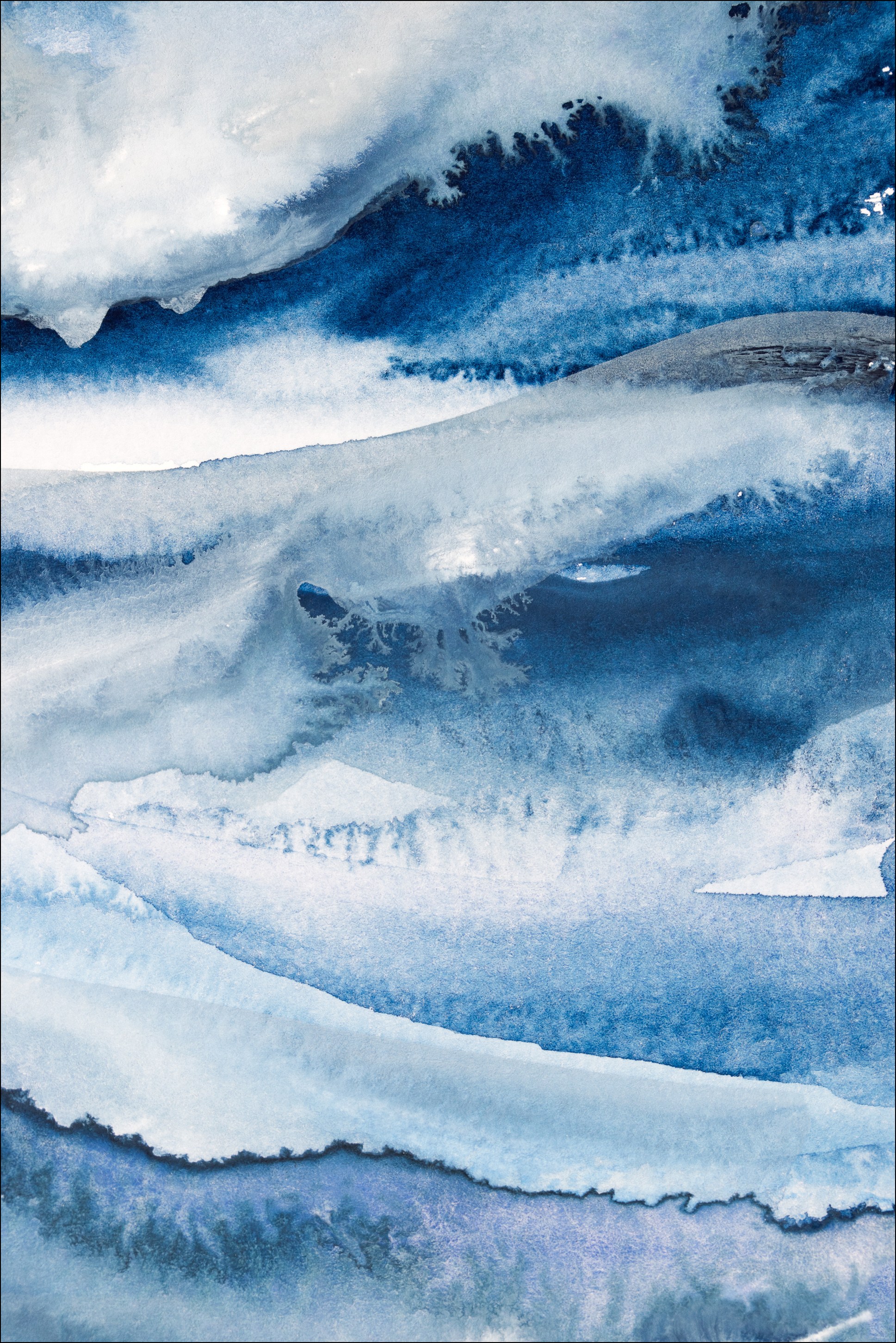 Piękny plakat z ruchomymi falami morza. Biała piana dominuje nad błękitną wodą, gdy jest znoszona przez wiatr morski. Różne odcienie niebieskiego tworzą uczucie chłodu, a ty możesz niemal poczuć świeżość powietrza, kiedy powiesisz ten piękny wydruk w swoim domu.