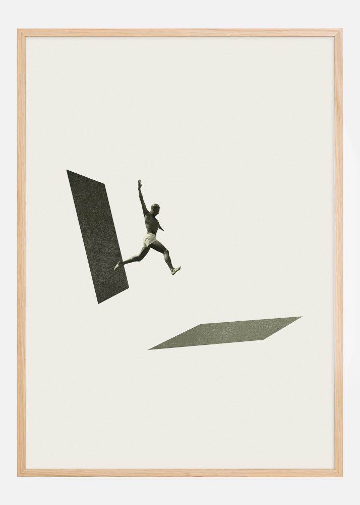Minimalistyczny design, z czystymi liniami i ograniczoną paletą kolorów w neutralnych tonach, podkreśla prostotę akcji i ruch postaci. Jest to plakat, który inspiruje oglądających do podejmowania ryzyka i nie stania w miejscu, co czyni go doskonałym dodatkiem do przestrzeni biurowych, pokoi do nauki lub innych środowisk, gdzie motywacja i siła napędowa są cennymi cechami.