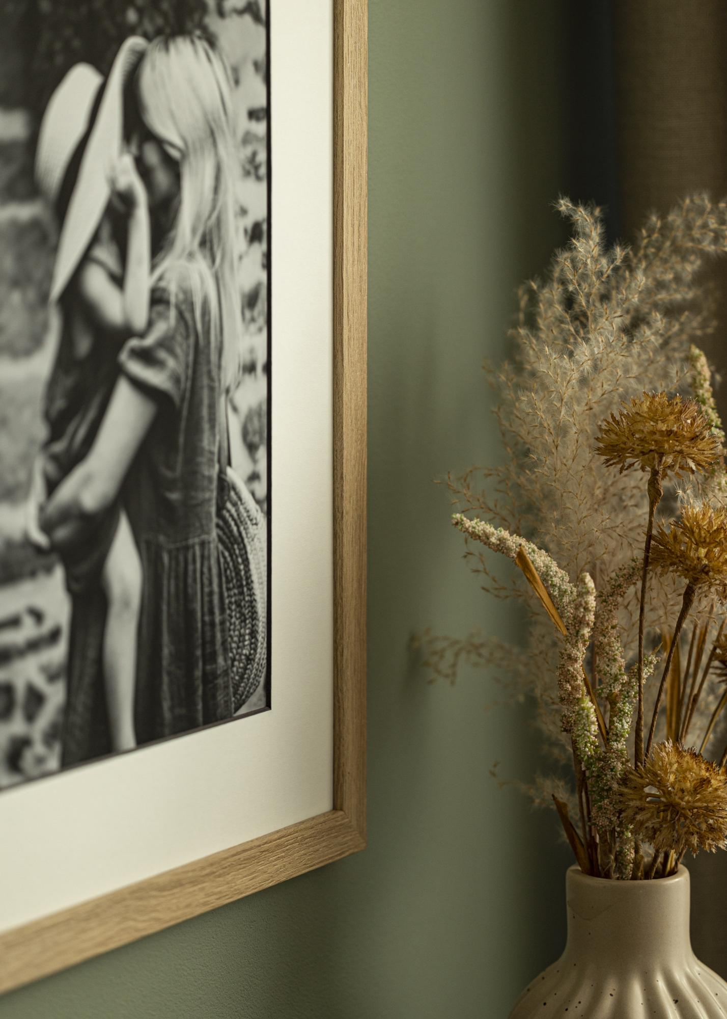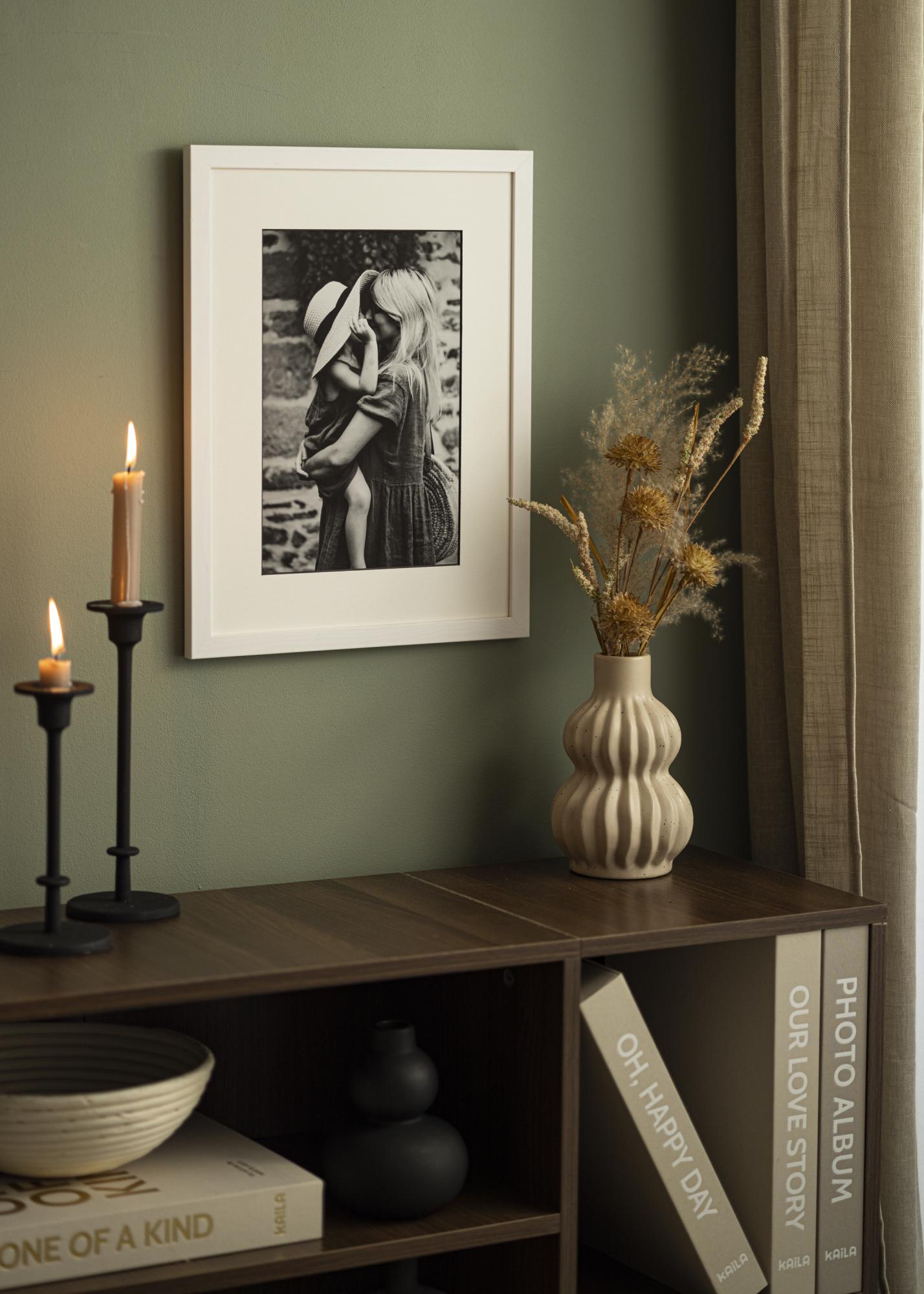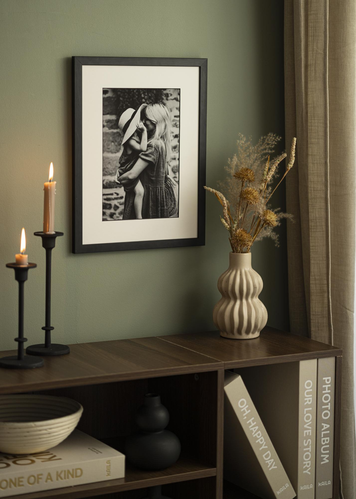 Dzięki czarnemu rdzeniowi uzyskujesz elegancką czarną krawędź najbliżej motywu. Idealne, gdy chcesz mieć coś innego niż całkowicie biała passepartout. Z czarną krawędzią najbliżej motywu uzyskujesz naturalne przełamanie, które daje interesujący efekt dla wielu rodzajów motywów.