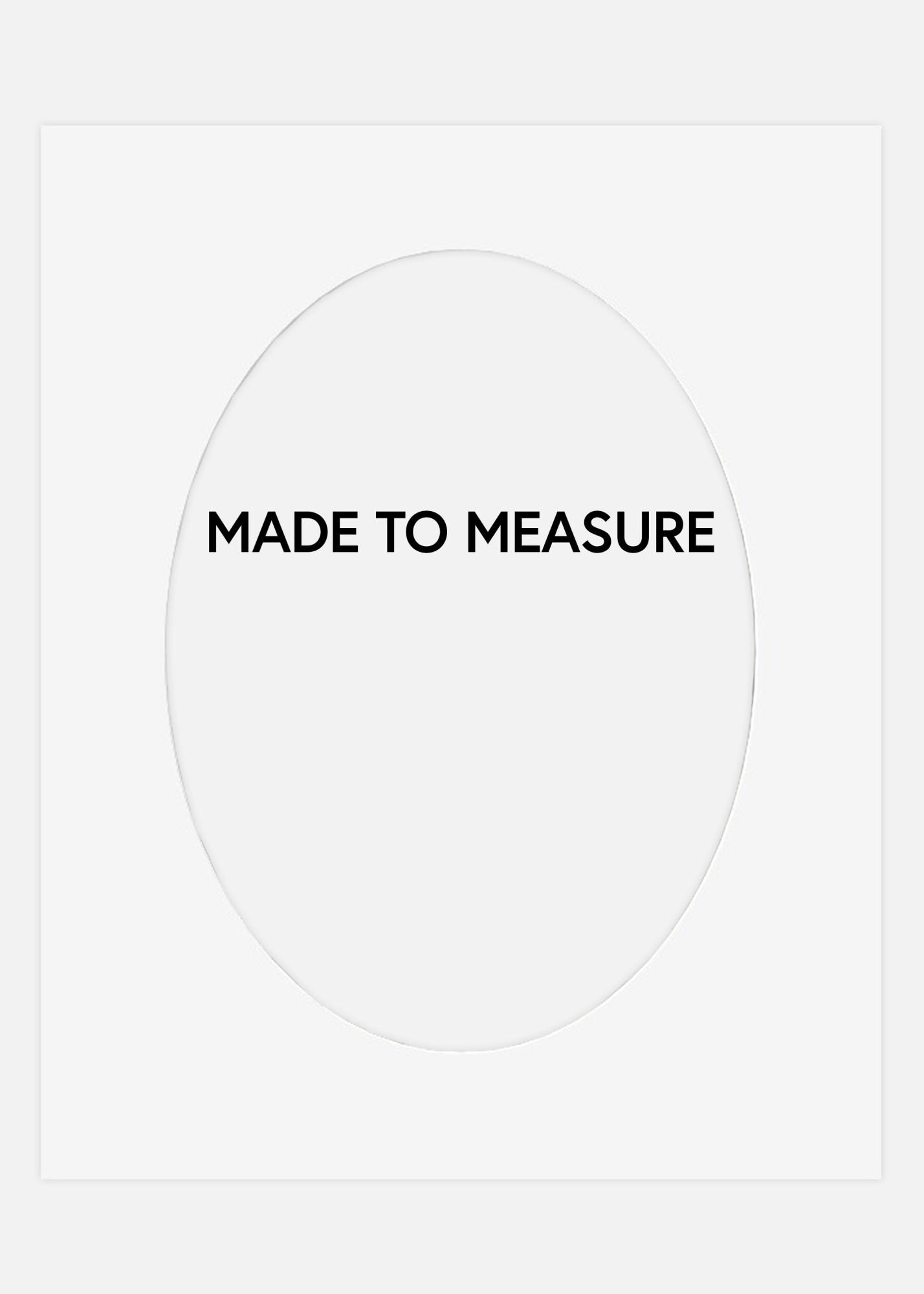 Biały owalny lub okrągły passepartout w własnych wymiarach z białą 45-stopniową fazą najbliżej motywu. Doskonały wybór do portretów w klasycznym stylu.