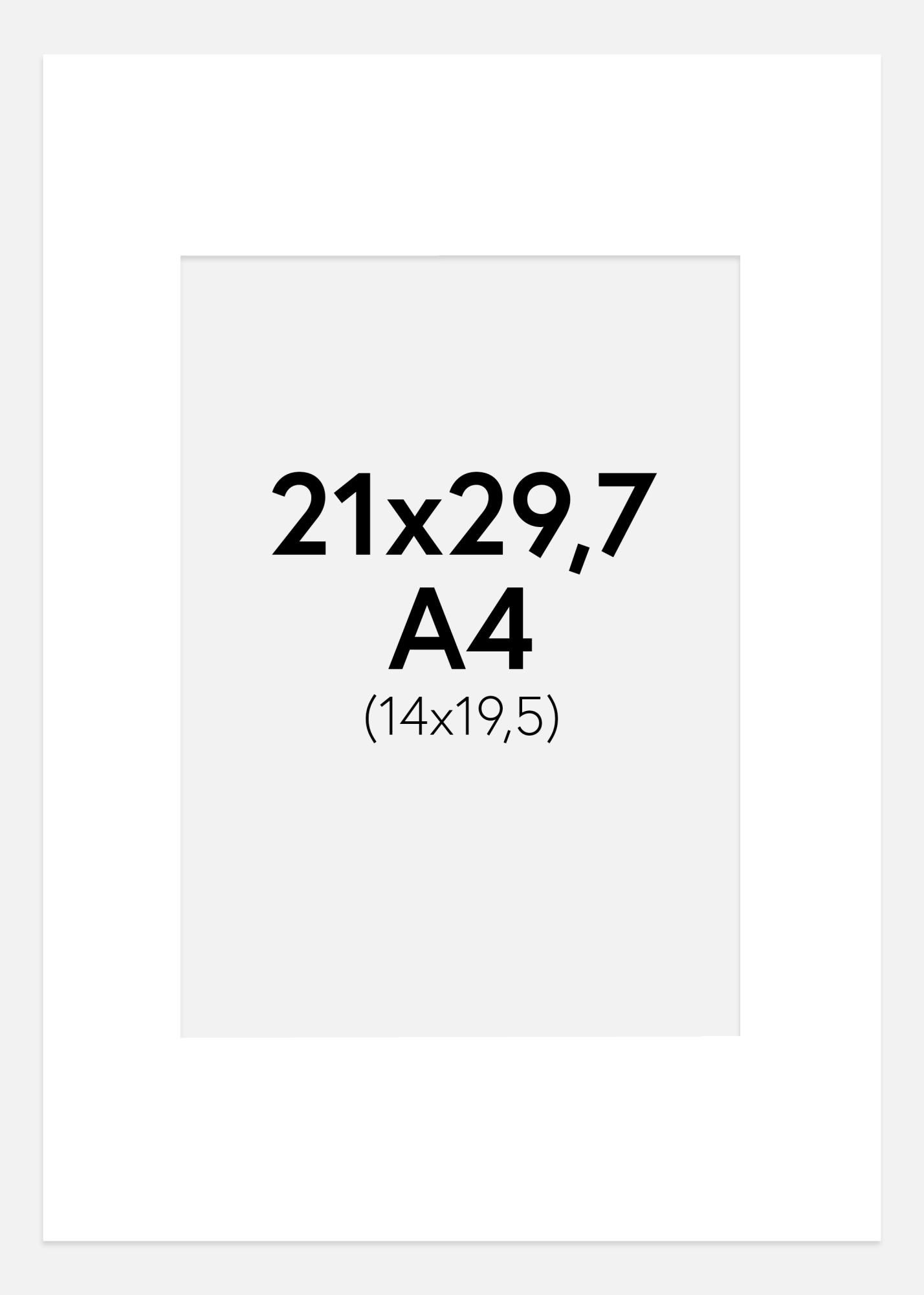 Passepartout Superbiała pozwala skupić się na motywie, dzięki swojej super białej barwie i białym, skośnie ciętym krawędziom najbliżej motywu obrazu. Biała passepartout nadaje również lekki i elegancki wyraz! Pasuje do wszystkich ram, które sprzedajemy – pamiętaj tylko, że zewnętrzne wymiary passepartout muszą być takie same jak wielkość ramy.