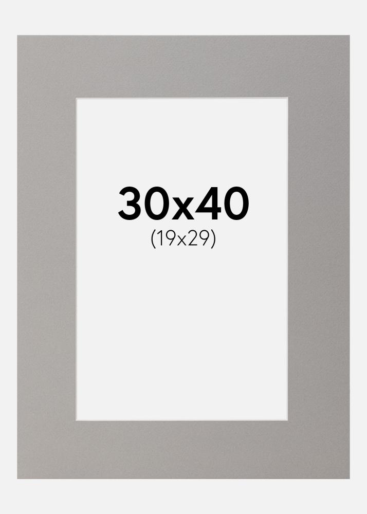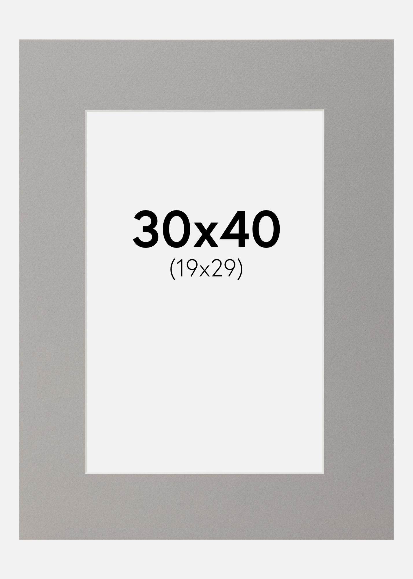 Solidna szara passepartou z białymi, skośnymi wewnętrznymi krawędziami z kartonu odpornego na działanie kwasów.