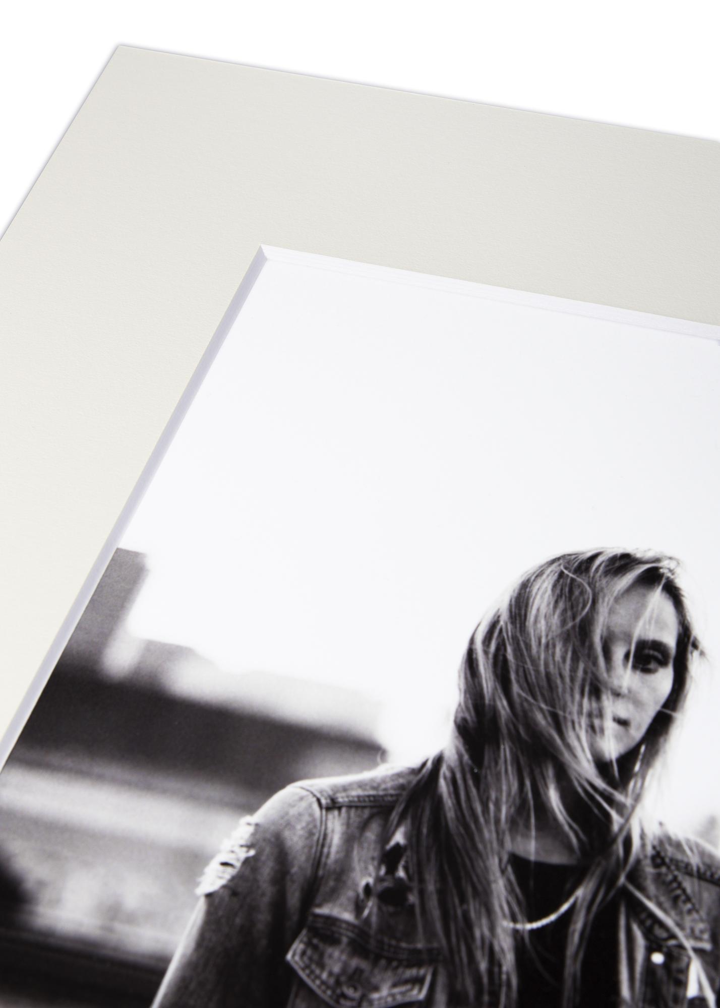 Ta passepartout jest produkowana na zamówienie w wymiarach, które sobie życzysz. Passepartout jest wolna od kwasu, neutralna pod względem PH, a materiał pochodzi z zrównoważonych źródeł leśnych.