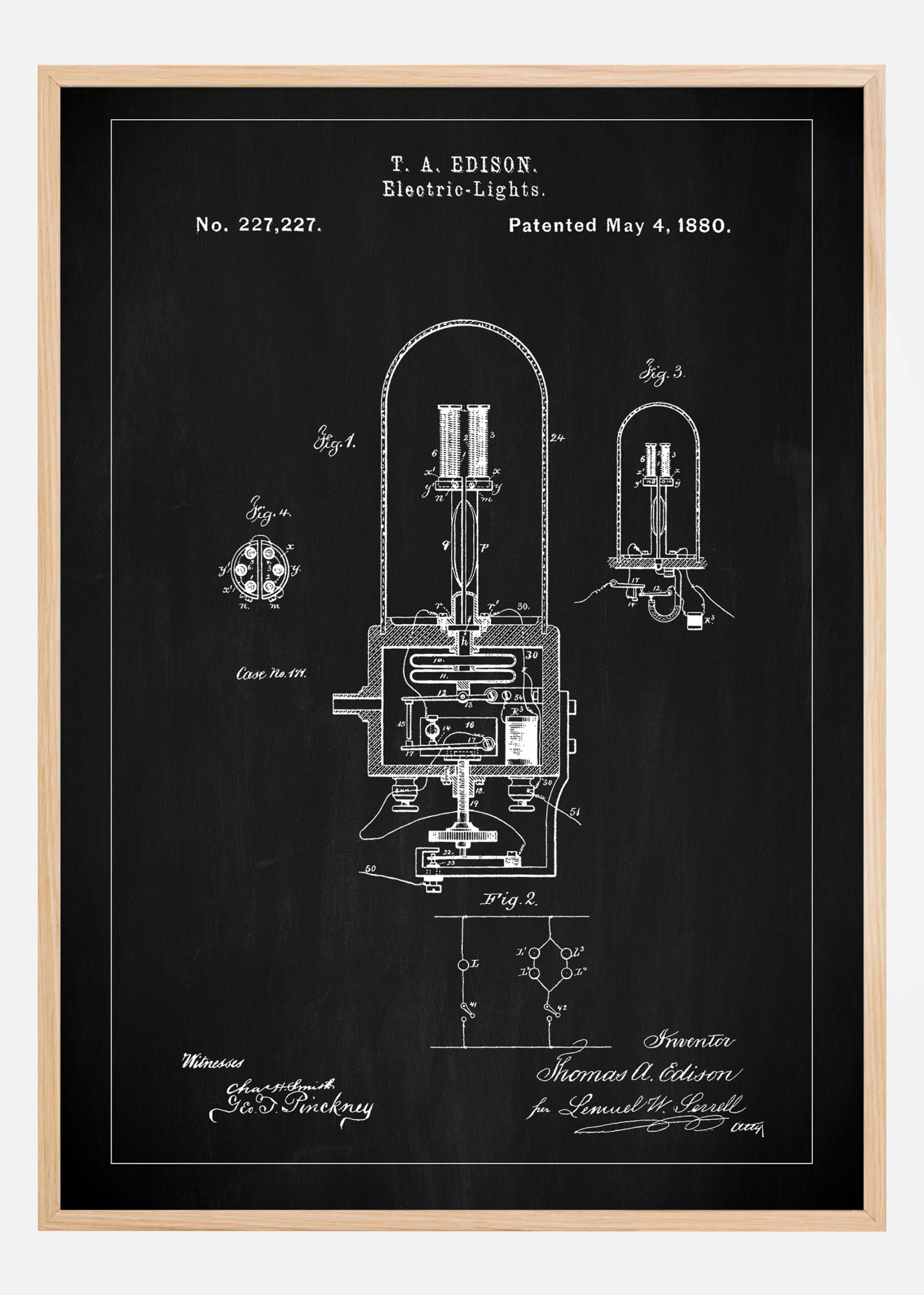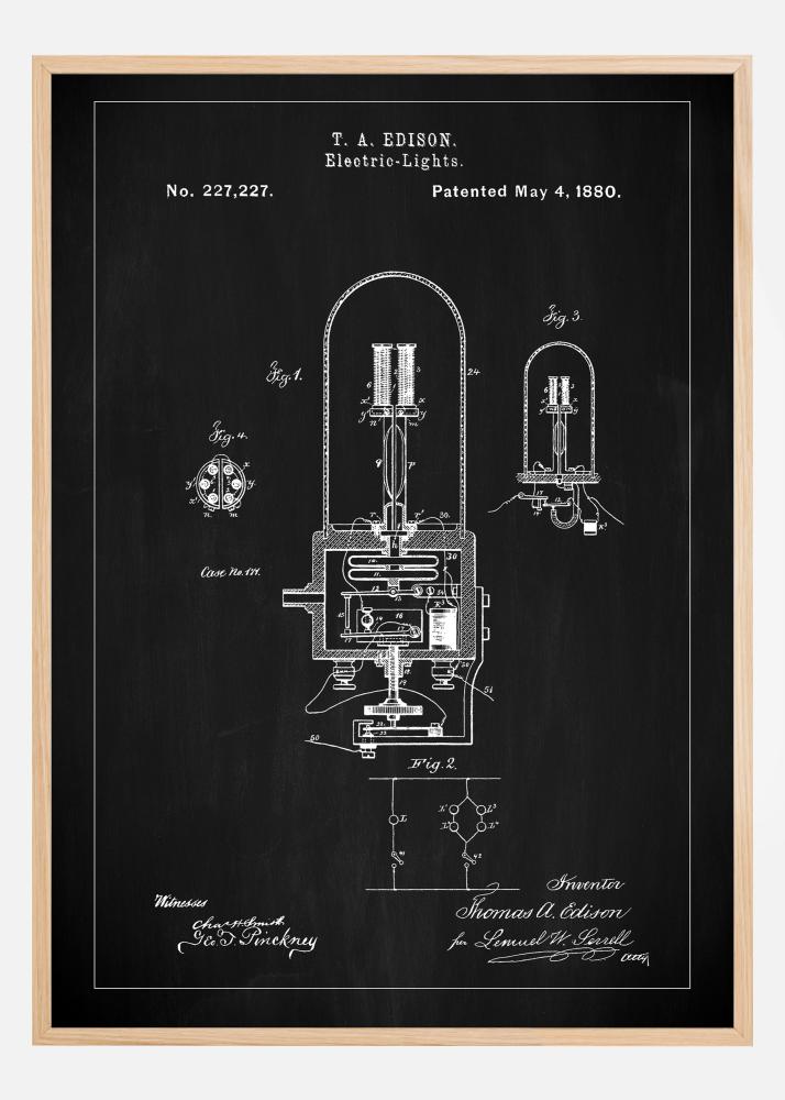 Ten unikalny plakat patentowy przedstawia jeden z najbardziej rewolucyjnych wynalazków w historii - elektryczne światło T.A. Edisona, które zostało oficjalnie opatentowane 4 maja 1880 roku pod numerem patentowym 227,227. Motyw zaprezentowany jest w eleganckim czarno-białym wzorze i zachwyca swoim skomplikowaniem oraz wartością historyczną. To fantastyczny początek rozmowy i stylowy element dekoracyjny, który doskonale pasuje do każdego domu lub biura o zacięciu naukowym i designerskim.