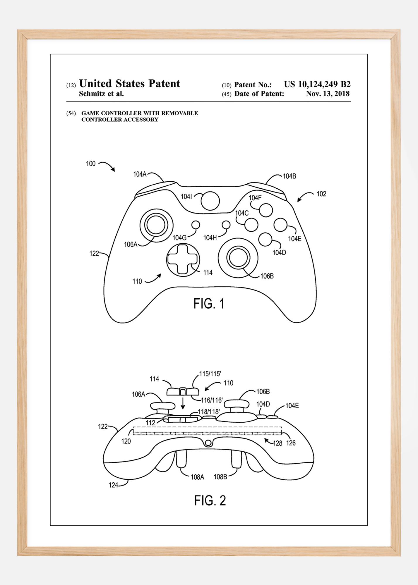 Idealna dekoracja dla biura dewelopera gier, lobby firmy zajmującej się grami lub osobistej przestrzeni gracza, ten rysunek patentowy nie tylko celebruje kreatywność techniczną stojącą za nowoczesnymi kontrolerami do gier, ale także pokazuje postępy w dziedzinie technologii interaktywnych. Ten plakat patentowy odzwierciedla, jak daleko posunęła się branża i nieskończone możliwości, które wciąż są przed nami w zakresie projektowania i funkcjonalności świata gier.