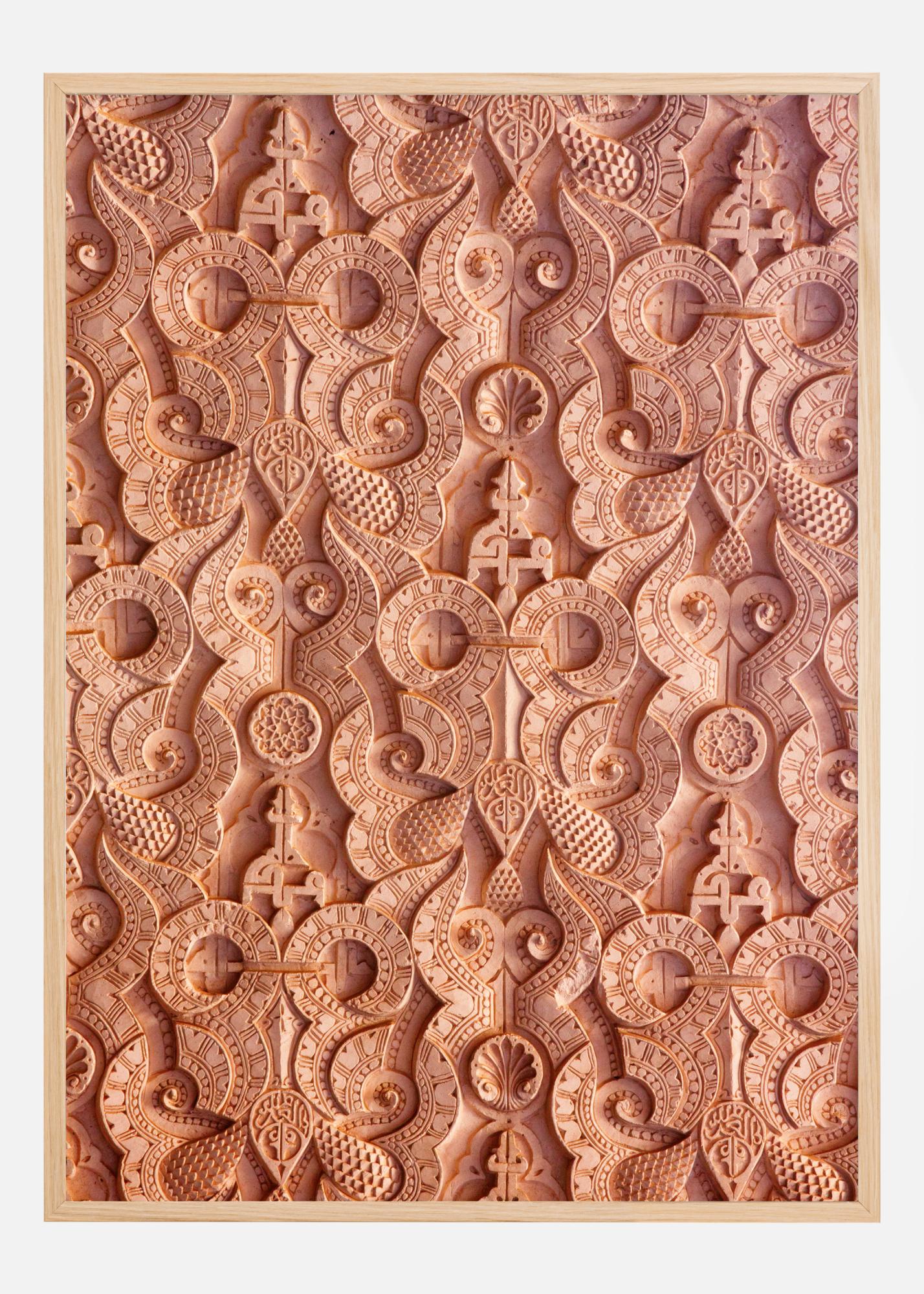 Kolory motywu utrzymane są w palecie ciepłych terakot i gliny, co nadaje obrazowi naturalny i rustykalny charakter. Szczegółowy wzór dobrze wyróżnia się na jednolitym tle, tworząc trójwymiarową iluzję, która jest zarówno atrakcyjna, jak i głęboka. Ten plakat jest idealny dla tych, którzy doceniają sztukę przyciągającą wzrok i zachęcającą do bliższego spojrzenia oraz ceniące rzemiosło i tradycję w swoim stylu wnętrzarskim.