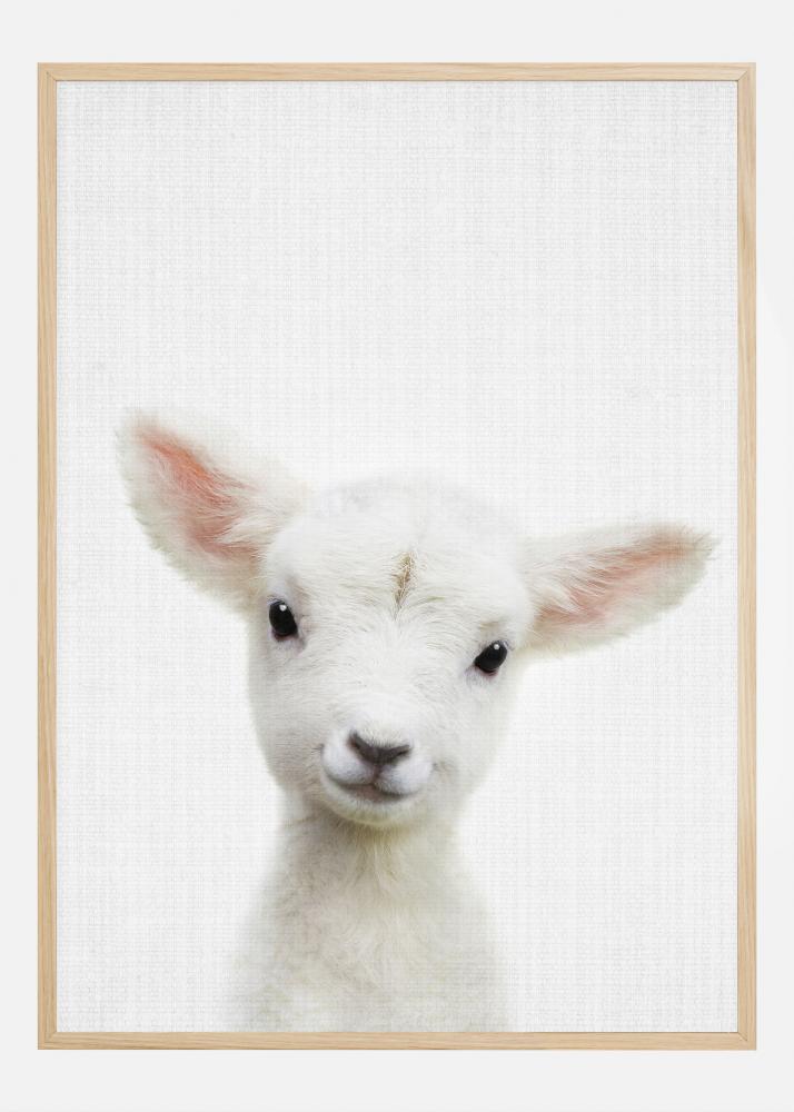 Nasza urocza plakat z jagniątkiem jest prawdziwą przyjemnością dla oka, idealna do stworzenia miękkiej i przytulnej atmosfery w każdym pomieszczeniu. Ten czarujący wydruk przedstawia wełniste jagnię spoglądające w kamerę z niewinnym i ciekawym spojrzeniem. Z jego futrem w czystym odcieniu bieli i delikatnym różowym kolorem uszu, ten plakat oferuje poczucie ciepła i komfortu.
