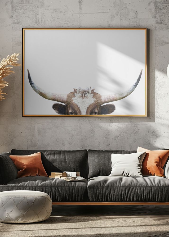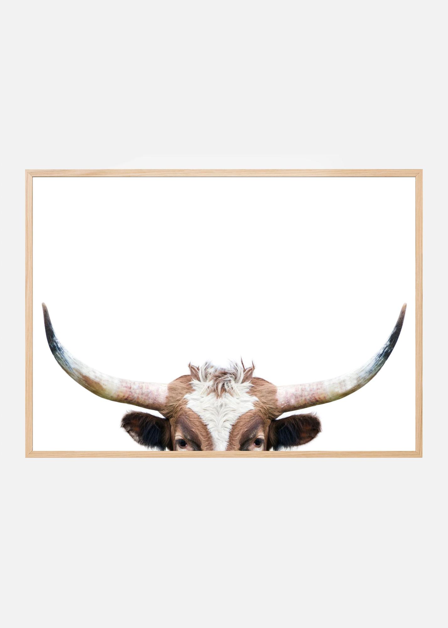Peeking Longhorn Cow Poster