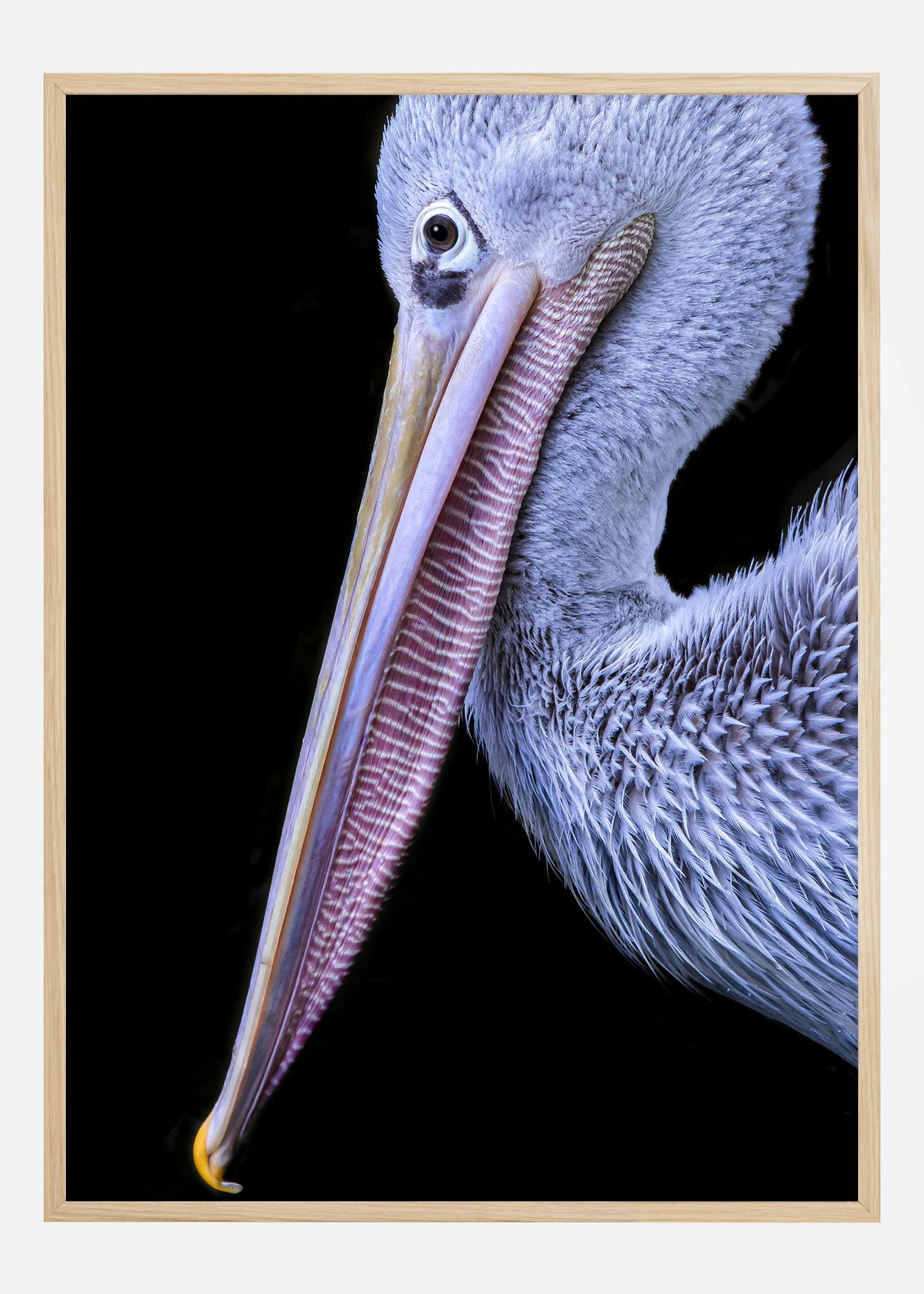 Ten uderzający plakat uwydatnia piękno i szczegółowość pelikana, z jego unikalnym dziobem i upierzeniem uchwyconym na tle głębokiego czarnego tła. Dziób tej imponującej ptaki, w delikatnych odcieniach różu i żółci, stanowi potężny kontrast, który nadaje motywowi żywą i niemal trójwymiarową głębię. Idealny druk dla wszystkich miłośników natury i ornitologów, którzy chcą mieć kawałek dzikiej przyrody w swoim domu.