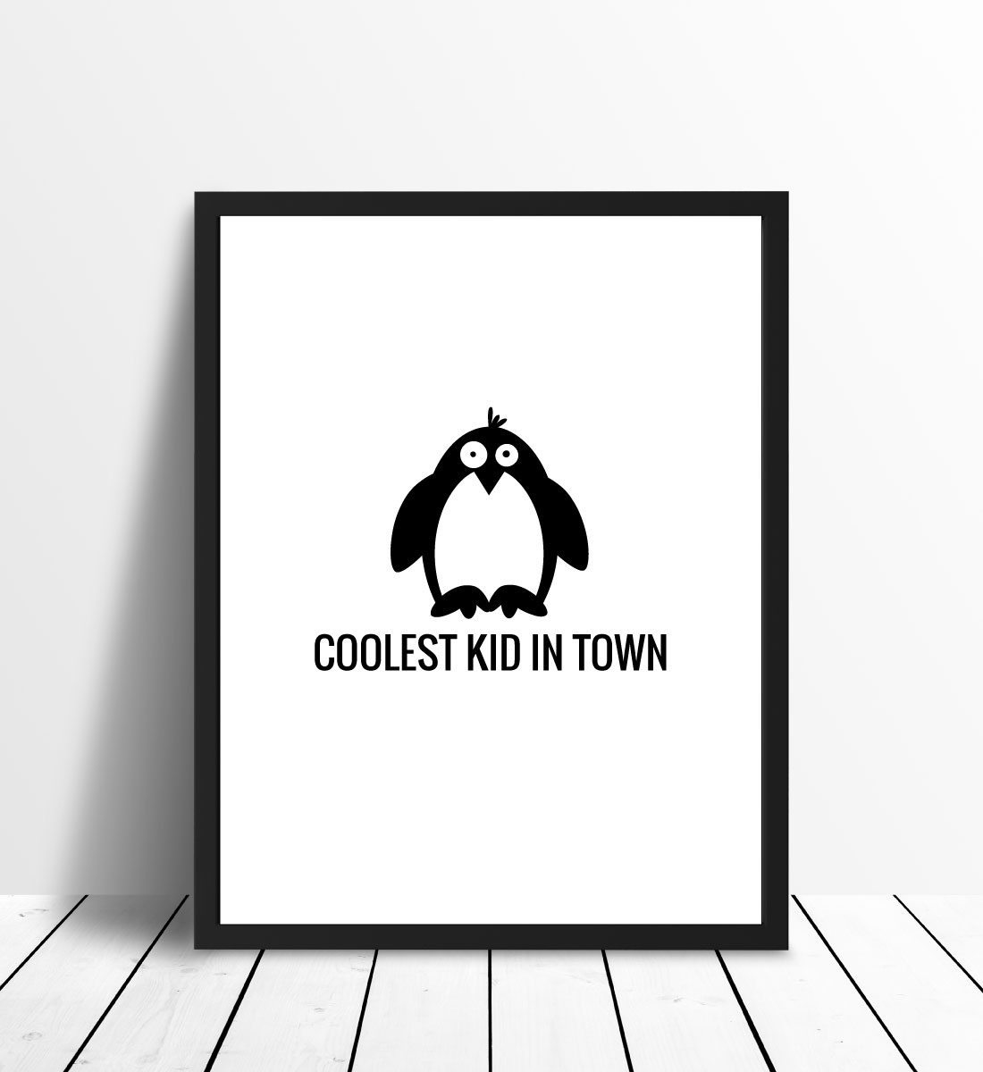 Plakat z najzimniejszym motywem w mieście. Pingwiny są fajne, podobnie jak dzieci, które mają ten plakat. Graficzna czarno-biała ilustracja, z elegancką czcionką, pasuje do każdego pokoju dziecięcego. Połącz plakat z jednym z innych wydruków w tym samym stylu, aby stworzyć serię - Dino Favorite, Elefant Dream, Hund Little, Superhero lub Kanin Happy.