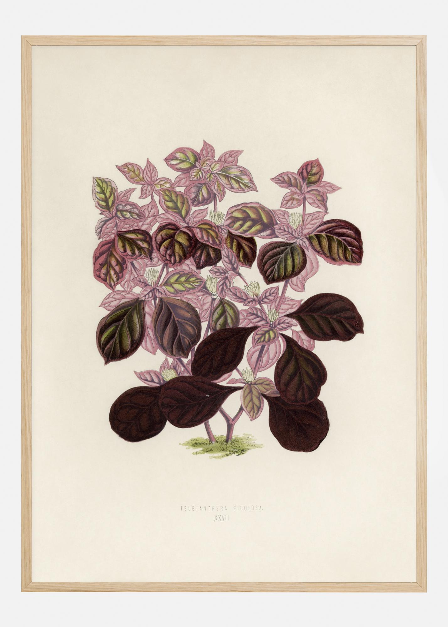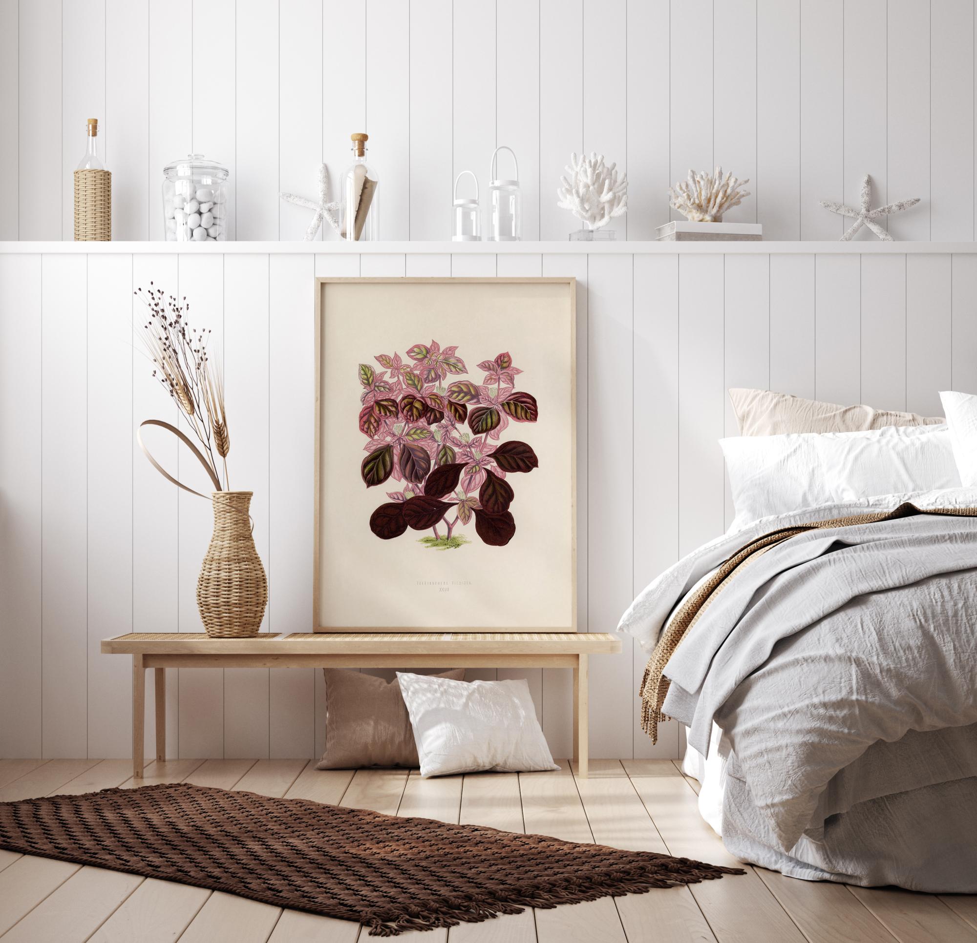 Piękny nadruk ręczny dwóch różowych Plectranthus scutellarioides. Miękkie beżowe tło podkreśla piękne odcienie różu i zieleni. Wzdłuż łodygi rośliny bordowy kolor tworzy ciepłe odczucie na posterze. Powieś ten nadruk w swojej domowej kolekcji sztuki.