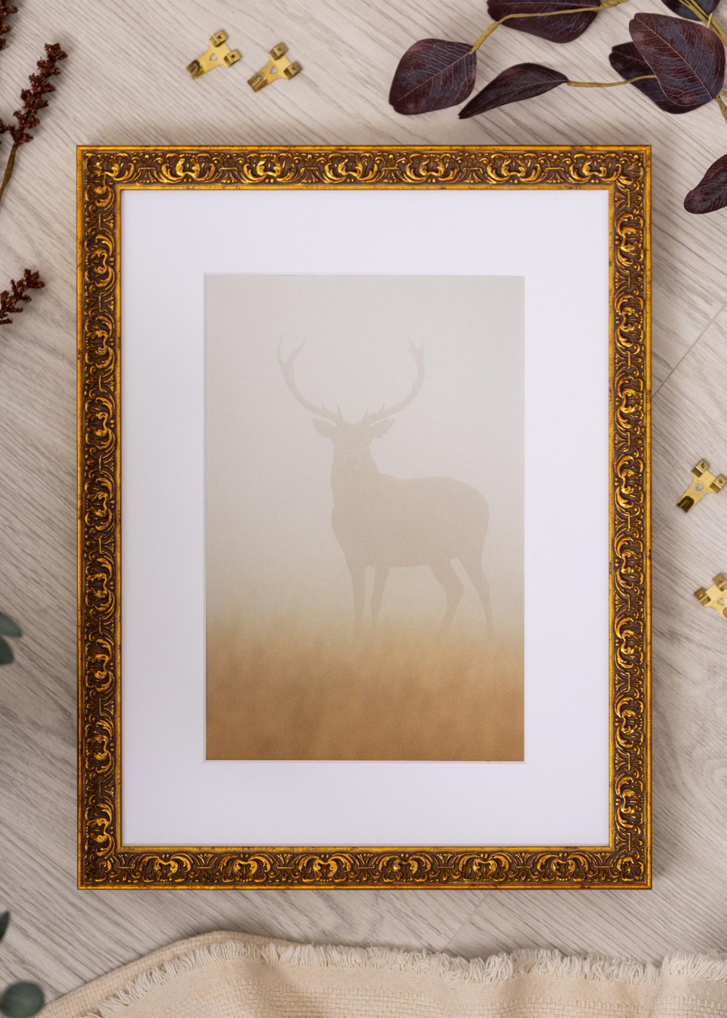 Ta ramka na zdjęcia została zaprojektowana tak, aby pasowała do motywów o wymiarach 30 x 40 cm i jest wyposażona w praktyczne metalowe wieszaki z tyłu. Dzięki temu można powiesić ramkę zarówno poziomo, jak i pionowo, w zależności od tego, co najlepiej pasuje do Twojego motywu. Niezależnie od tego, czy chcesz pokazać piękny portret, czy historyczne dzieło sztuki, ta złota ramka przykuje należytą uwagę do Twojego motywu.