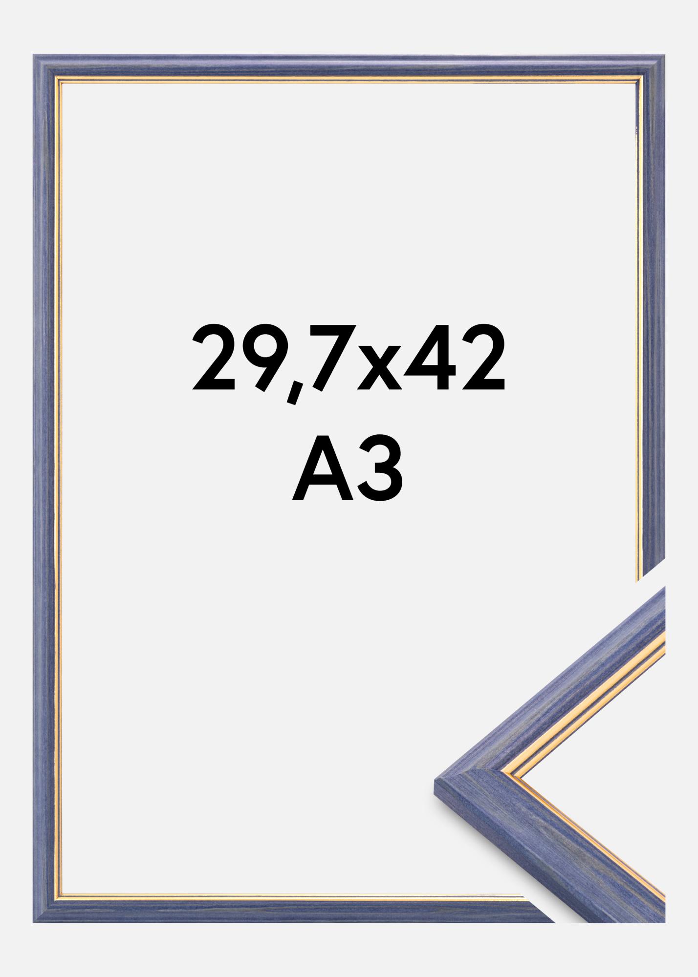 Ta elegancka ramka na zdjęcia w głębokim niebieskim odcieniu jest doskonałym połączeniem klasycznego designu i nowoczesnej funkcjonalności. Dzięki rozmiarowi ramki 29,7x42 cm (A3) jest idealna do wyeksponowania swoich ulubionych dzieł sztuki lub fotografii. Wąska, 15 mm szeroka listwa ramki z subtelnymi złotymi detalami wzdłuż krawędzi nadaje sofistykowanego wyglądu i tworzy stylowy kontrast dla motywu. Struktura drewna jest dyskretnie widoczna przez farbę, co nadaje ramce na obrazy ciepły i żywy charakter.