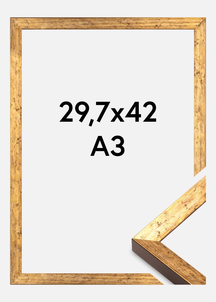 Ta elegancka ramka do zdjęć w kolorze złotym jest doskonałym połączeniem stylu vintage i nowoczesnego designu. Dzięki swojej postarzałej, złotej powierzchni i subtelnie szorstkiej fakturze, nadaje rustykalny i ponadczasowy urok, który świetnie pasuje zarówno do klasycznych, jak i nowoczesnych wnętrz. Ramka jest wykonana z drewna i ma wąski profil z listwą o szerokości 20 mm i głębokości 24 mm. Ta ramka do obrazów jest idealna do wyeksponowania dzieł sztuki lub fotografii z antycznym akcentem.