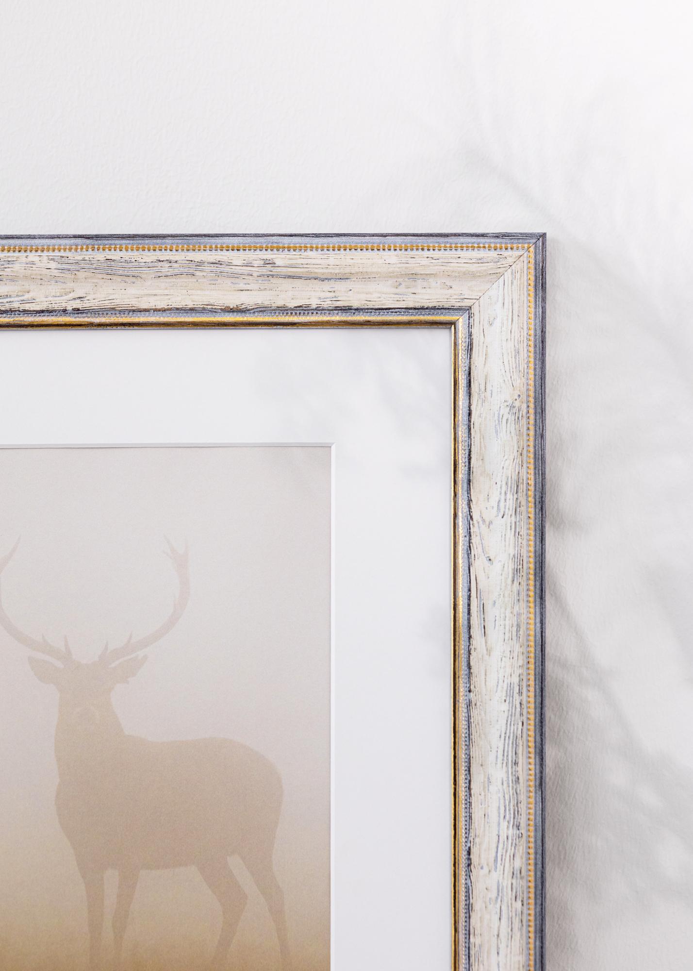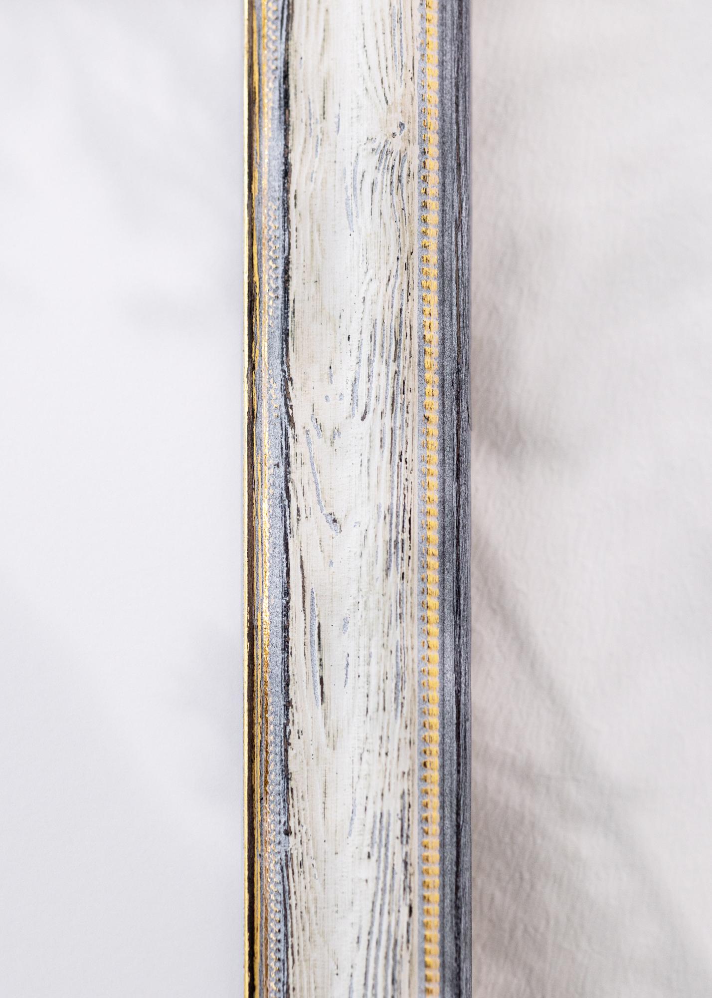 Ta elegancka ramka na zdjęcia to doskonałe połączenie inspirowanego stylem vintage z nowoczesną funkcjonalnością. Dzięki rustykalnemu biało-szaremu wykończeniu drewna, ramka oferuje urokliwy postarzały wygląd, który doskonale pasuje do wiejskich i shabby chic wnętrz. Subtelne złote detale wzdłuż wewnętrznej krawędzi nadają klasyczny akcent, który eksponuje Twoje zdjęcia i dzieła sztuki z ponadczasowym i wyrafinowanym wyczuciem.
