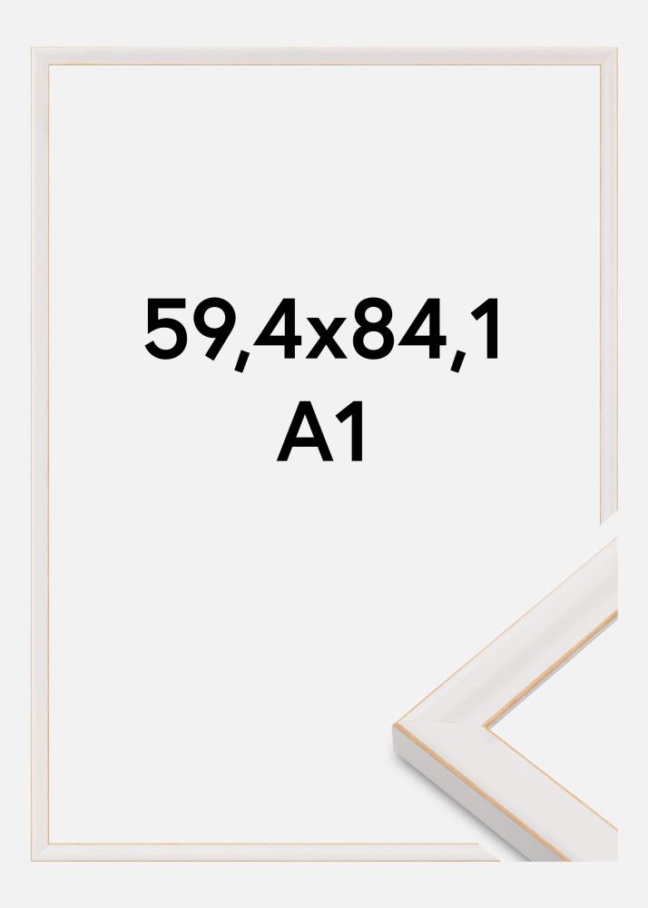 Ta elegancka ramka na zdjęcia w miękkim, kremowobiałym odcieniu z cienką złotą krawędzią to doskonałe połączenie klasycznego i nowoczesnego designu. Dzięki rozmiarowi ramy 59,4x84,1 cm (A1) jest idealna do eksponowania dzieł sztuki, fotografii lub wspomnień w ponadczasowy sposób. Subtelny złoty detal wzdłuż wewnętrznej krawędzi nadaje ekskluzywne uczucie i otacza Twoje zdjęcia ze stylem.