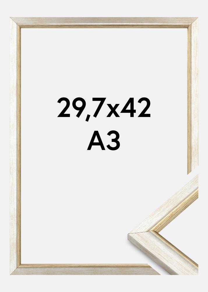 Elegancka ramka na zdjęcia w kolorze srebrnym to idealne połączenie nowoczesnego designu i klasycznego uroku. Dzięki subtelnemu szczotkowanemu wykończeniu nadaje wyrafinowany akcent Twoim zdjęciom i dziełom sztuki. Ramka wykonana jest z drewna i ma listwę o szerokości 19 mm oraz głębokości 15 mm, co nadaje jej stabilny i solidny charakter. Ta ramka na obrazy jest idealna dla motywów o rozmiarze 29,7x42 cm (A3), co czyni ją perfekcyjną do eksponowania Twoich ulubionych zdjęć lub dzieł sztuki.