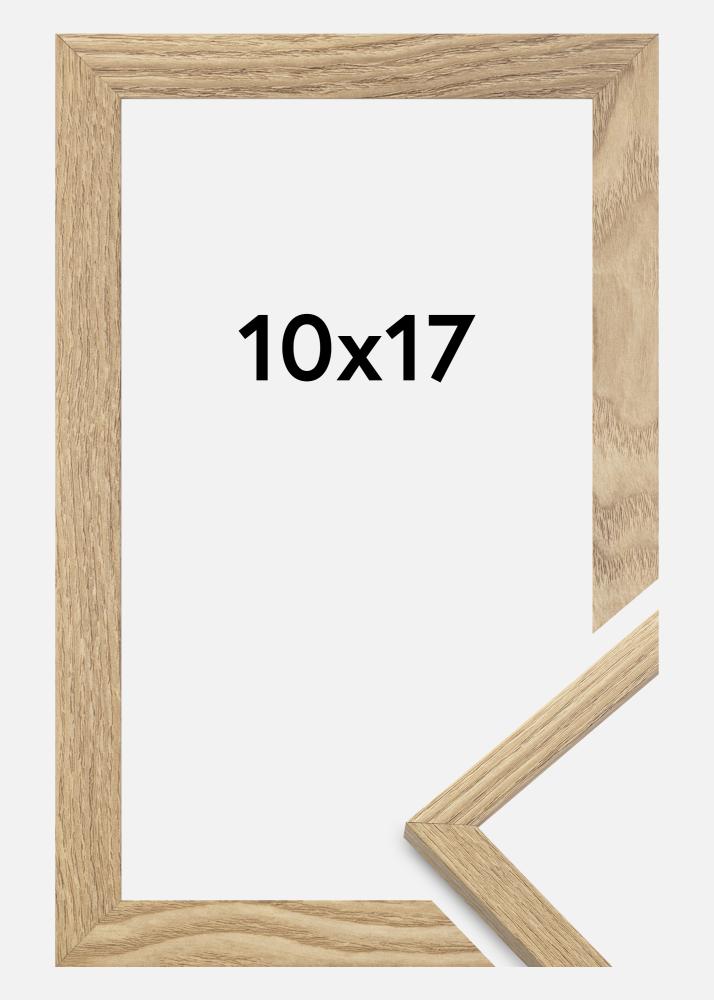 Rama jest wykonana z materiału MDF z foliowaną powierzchnią w kolorze dębu i ma cienki profil ramy o szerokości 14 mm. Jest dużo miejsca, aby uzupełnić zdjęcia luksusowym passe-partout, dzięki wewnętrznej głębokości ramy (głębokość felc) wynoszącej 12 mm.