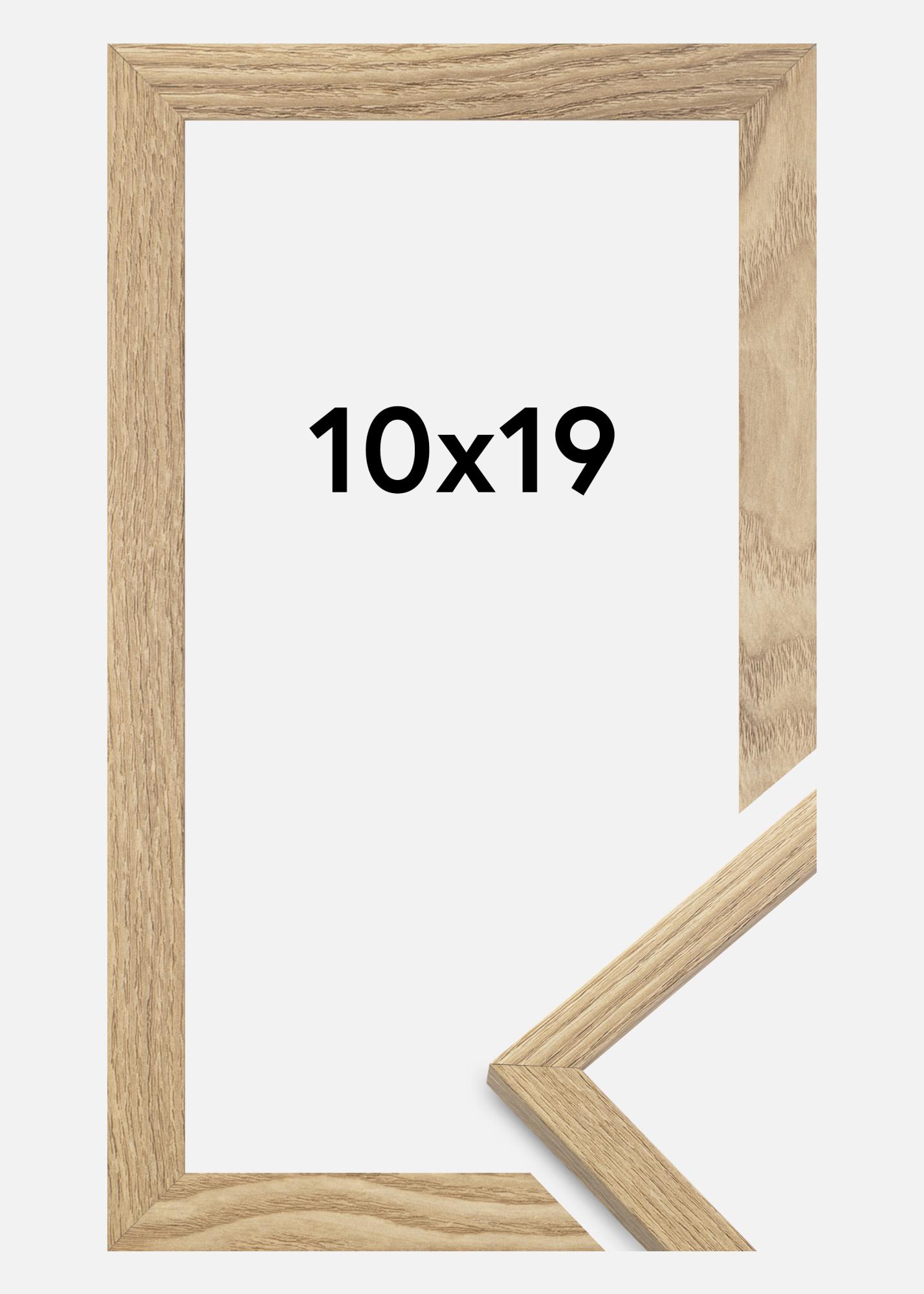 Rama jest wykonana z materiału MDF z foliowaną powierzchnią w kolorze dębu i ma cienki profil ramy o szerokości 14 mm. Jest dużo miejsca, aby uzupełnić zdjęcia luksusowym passe-partout, dzięki wewnętrznej głębokości ramy (głębokość felc) wynoszącej 12 mm.