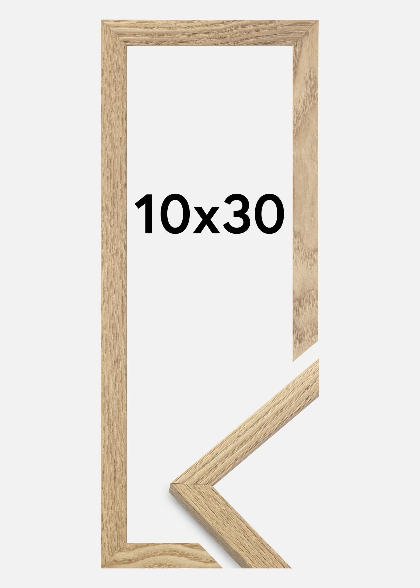 Ta stylowa rama na zdjęcia w wykończeniu dębowym to doskonały wybór, aby nadać swoim zdjęciom ciepłą i naturalną oprawę. Z rozmiarem 10x30 cm idealnie nadaje się do wyeksponowania fotografii, dzieł sztuki i plakatów w gustowny sposób. Jej wąski profil i minimalistyczny design sprawiają, że łatwo wtapia się zarówno w klasyczne, jak i skandynawskie style wnętrz.