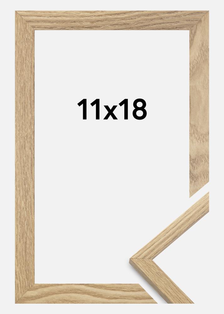 Rama jest wykonana z materiału MDF z foliowaną powierzchnią w kolorze dębu i ma cienki profil ramy o szerokości 14 mm. Jest dużo miejsca, aby uzupełnić zdjęcia luksusowym passe-partout, dzięki wewnętrznej głębokości ramy (głębokość felc) wynoszącej 12 mm.