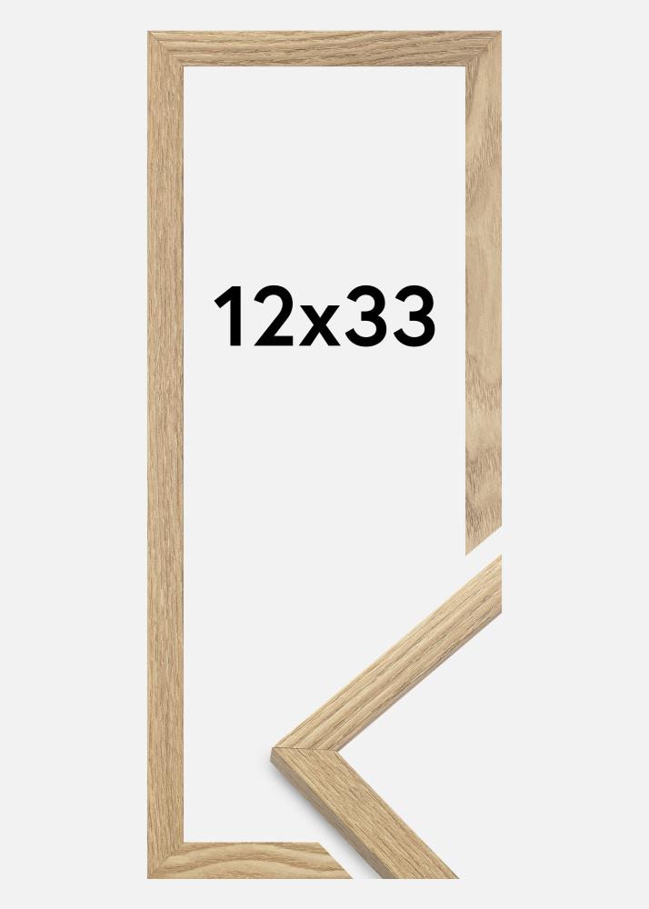 Rama jest wykonana z materiału MDF z foliowaną powierzchnią w kolorze dębu i ma cienki profil ramy o szerokości 14 mm. Jest dużo miejsca, aby uzupełnić zdjęcia luksusowym passe-partout, dzięki wewnętrznej głębokości ramy (głębokość felc) wynoszącej 12 mm.