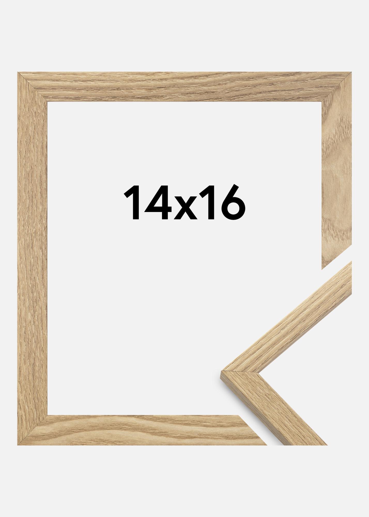 Rama jest wykonana z materiału MDF z foliowaną powierzchnią w kolorze dębu i ma cienki profil ramy o szerokości 14 mm. Jest dużo miejsca, aby uzupełnić zdjęcia luksusowym passe-partout, dzięki wewnętrznej głębokości ramy (głębokość felc) wynoszącej 12 mm.